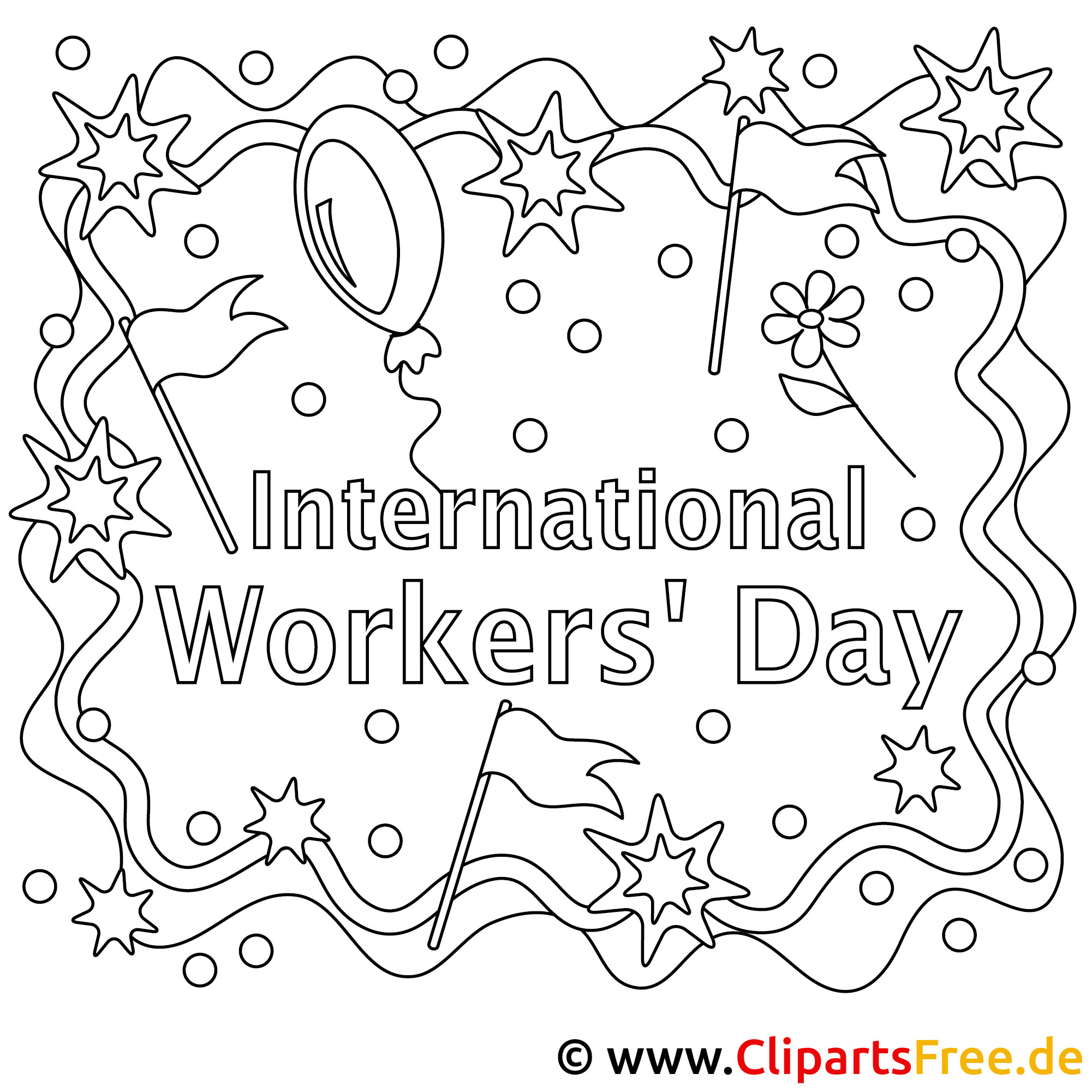 Das Ausmalbild zeigt eine fröhliche und bunte Szene, die den Internationalen Tag der Arbeit feiert. In der Mitte stehen große Buchstaben, die diesen besonderen Tag verkünden. Rundherum tummeln sich hübsche Fänchen, ein Luftballon schwebt friedlich durch die Luft, und kleine Sterne sowie eine zauberhafte Blume umrahmen das Bild. Es gibt viele Details, die darauf warten, bunt gestaltet zu werden – das weckt Kreativität und Freude!