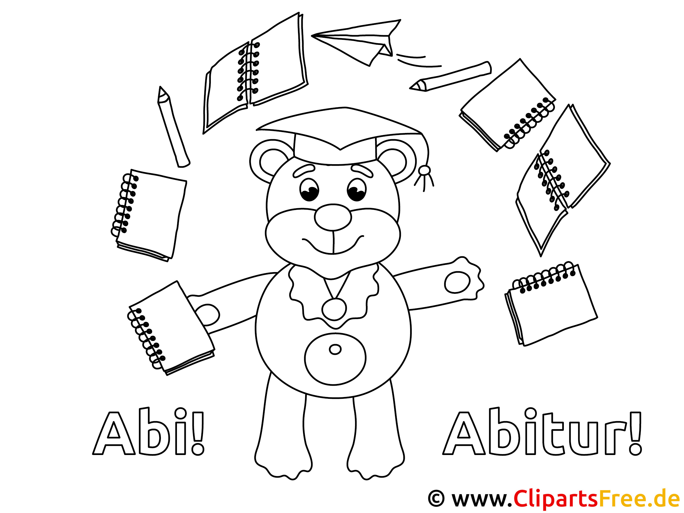 In diesem schönen Ausmalbild sehen wir einen fröhlichen Bären. Er trägt einen seltsamen Hut – na klar, nach dem Abi! Rundherum fliegen bunte Blätter, Stifte und sogar Papierflieger!Diese kleine Macke, naja... das gibt dem Bild einen besonderen Charme. Unter dem Bären steht groß und deutlich „Abi!“ und „Abitur!“. Sicher macht das allen viel Spaß, es auszumalen! Ich stelle mir gerade vor, wie die Kinder leuchtende Farben verwenden, selbst glitzernde Stifte könnten da zum Einsatz kommen – wow!