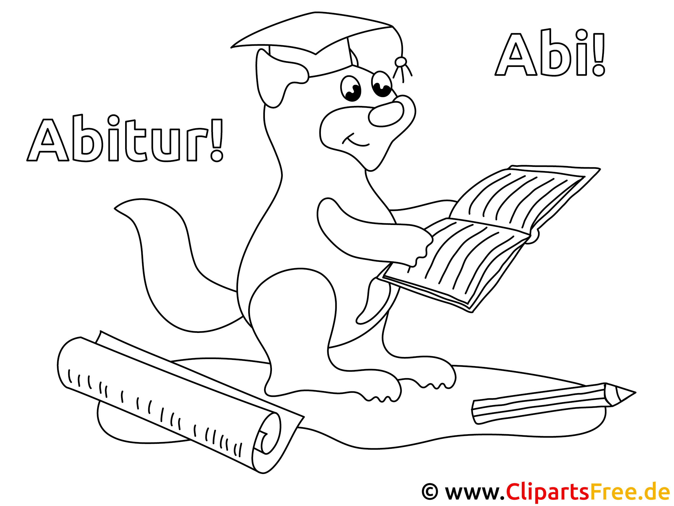 Das Ausmalbild zeigt ein fröhliches Tier, das eifrig in einem Buch liest. Außerdem trägt es einen kleinen Abschluss-Hut – ganz witzig, oder? Dieses süße Motiv versprüht Vorfreude und Freude über den Schulabschluss. Rund um das Thema Abitur ist das Bild gestaltet, daher geeignete Worte wie „Abi!“ und „Abitur!“ sind gut sichtbar. Außerdem sind im Hintergrund ein Lineal und ein Bleistift zu sehen, die Quasi die Schreibtischarbeit perfekt abrunden. Diese Details laden ein, kreativ zu werden und die eigene Vorstellungskraft spielen zu lassen.