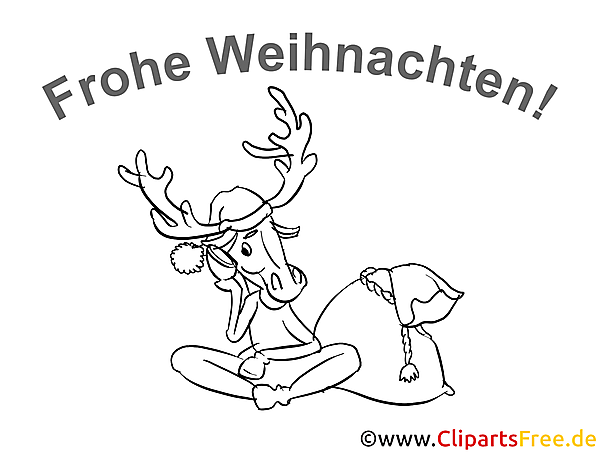 Hier haben wir ein entzückendes Ausmalbild, das, wie könnte es anders sein, mit dem Thema Weihnachten zu tun hat! Ein fröhliches Rentier sitzt da, ganz gemütlich, und hat einen großen Sack voller Geschenke dabei. Die Mütze auf dem Kopf - ja, die sieht einfach niedlich aus! Es strahlt Freude und Wärme aus und lädt dazu ein, kreativ zu werden. Rund um das Rentier steht der Schriftzug „Frohe Weihnachten!“, was wirklich perfekt zur festlichen Stimmung passt. Stell dir mal vor, wie bunt es aussehen könnte, wenn du es ausmalst – rot, grün, gold!