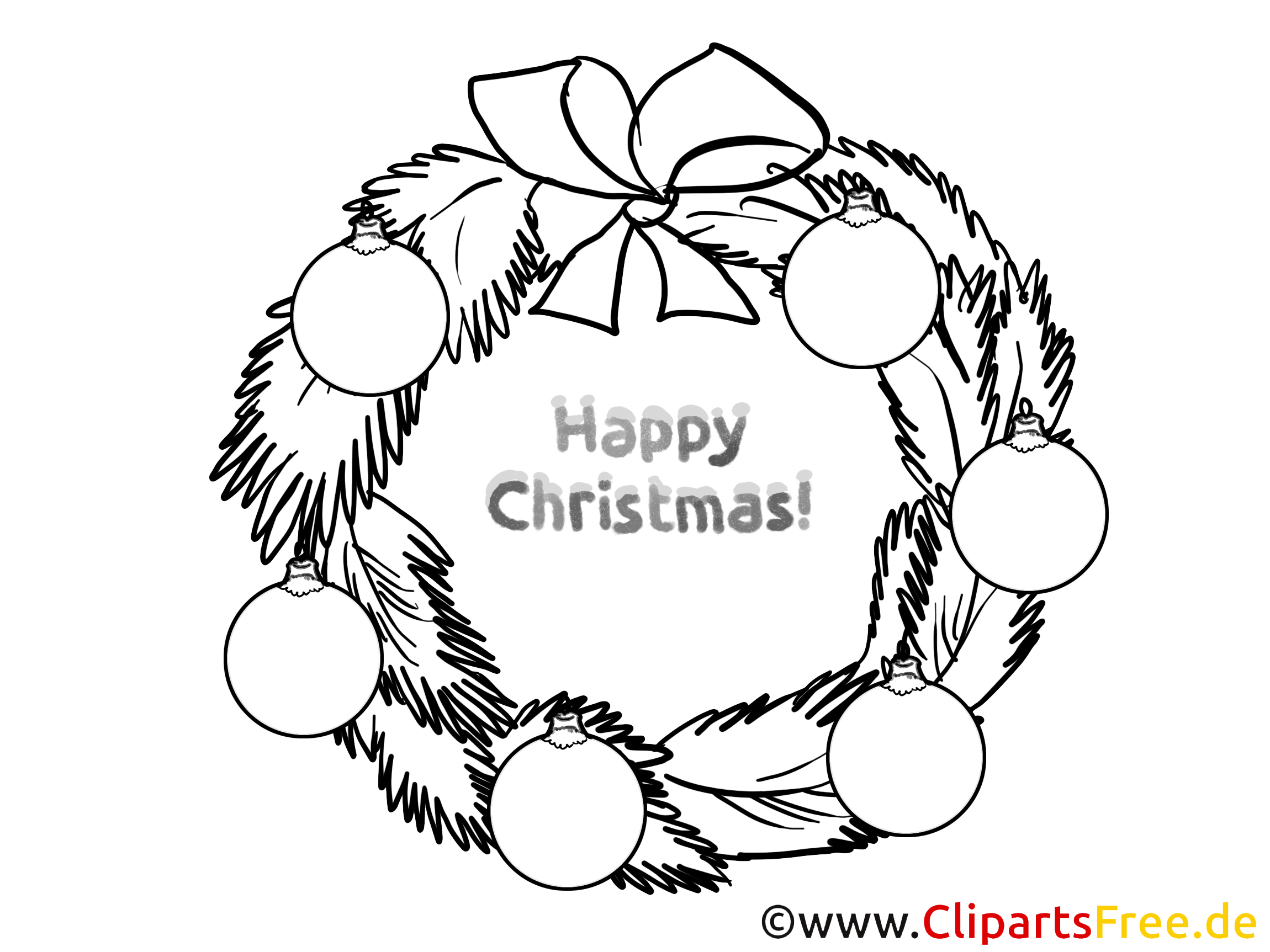 Das Ausmalbild zeigt einen festlichen Weihnachtskranz. Dieser Kranz ist mit kunstvollen, grünen Tannenzweigen geschmückt und hat gleich mehrere runde, bunte Weihnachtskugeln, die neugierig blitzen. Ganz oben prangt eine hübsche Schleife – dieser kleine Akzent zieht sofort die Aufmerksamkeit auf sich. Und in der Mitte, fast wie eine liebevolle Botschaft, steht „Happy Christmas!“. tja, Wirklich, ein motivierendes Bild, das einfach zum Ausmalen einlädt und ideal dazu geeignet ist, die Weihnachtsstimmung zu verbreiten. Kinder können hier ihrer Kreativität freien Lauf lassen!