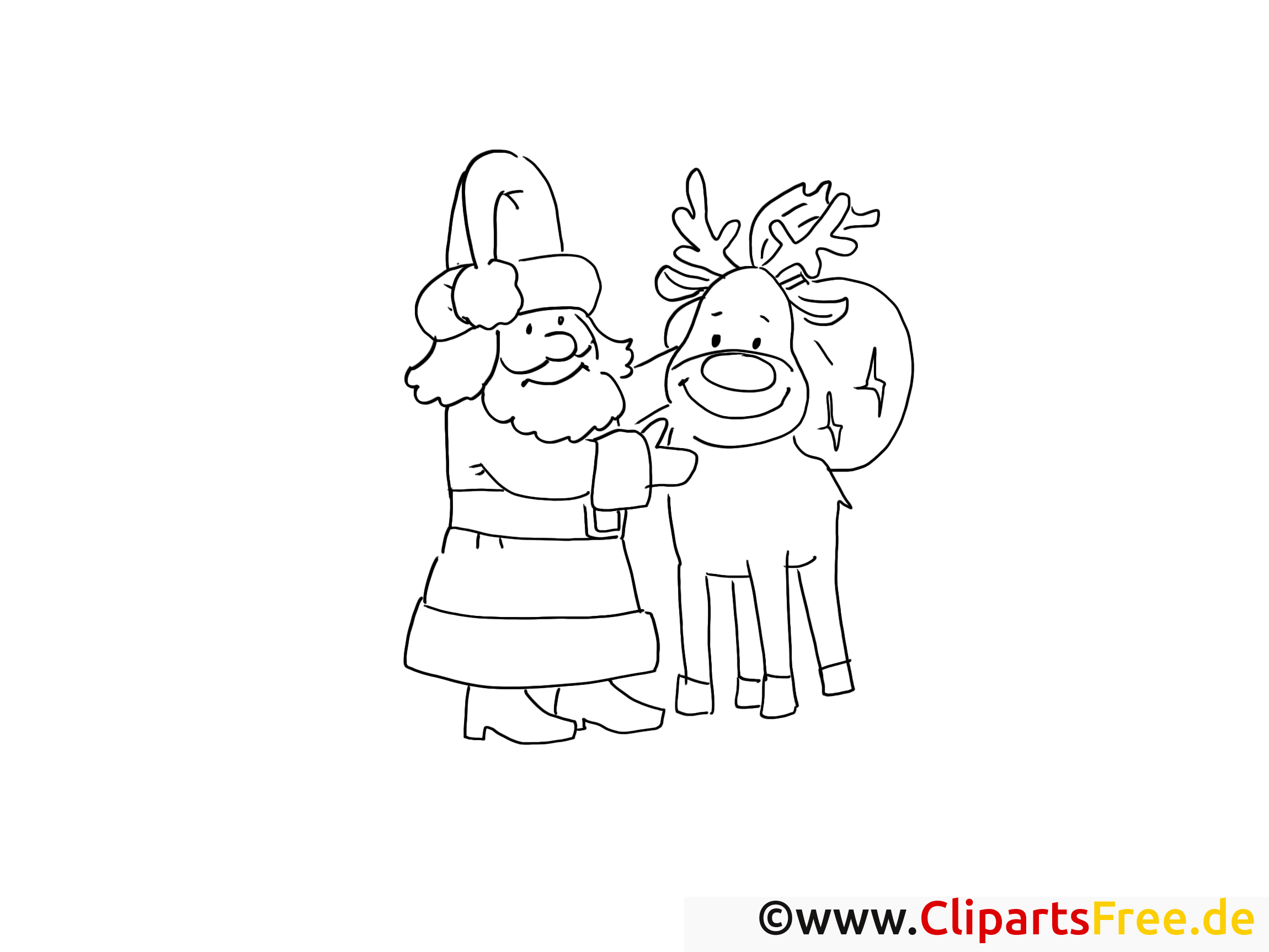 Der Stil dieser Malvorlage ist fröhlich und kindgerecht … . Die Linien sind dick und deutlich, sodass selbst die Kleinsten überall gut hinkommen. Es gibt keine versteckten Ecken oder schwierige Details, die die Kreativität behindern könnten. Sicher, das Motiv hat einen leicht cartoonhaften Charme, aber genau das macht es so einladend. Besonders natürlich kann man sich vorstellen, dass jede Farbe, die man wählt, den Charakteren wieder neues Leben einhaucht – vielleicht wählt jemand ein leuchtendes Rot für den Mantel des Weihnachtsmannes oder ein weiches Braun für das Fell des Rentiers.