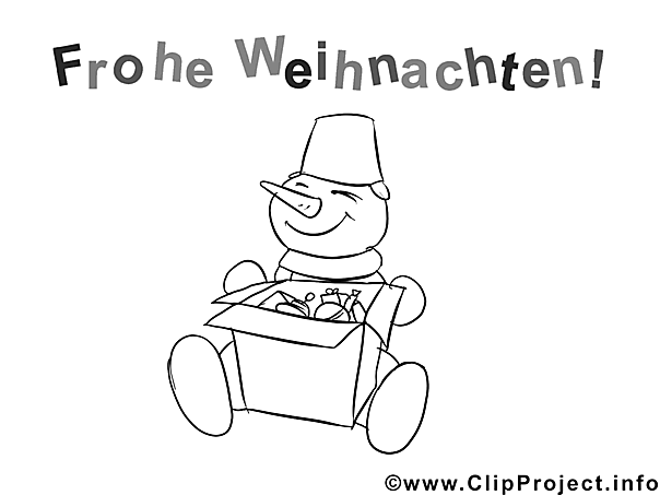 Hier haben wir ein ganz zauberhaftes Bild zum Ausmalen! Ein fröhlicher Schneemann sitzt zufrieden in einer großen Kiste, voller Überraschungen und Geschenke. Sein Gesicht strahlt pure Freude aus – die perfekte Weihnachtsstimmung! Der Schnee hat ihn schön rund und plump gemacht, und seine Mütze sitzt schief, was ihm einen besonders lustigen Ausdruck verleiht. Über ihm steht groß und bunt "Frohe Weihnachten!", was das Gesamtbild direkt festlich wirken lässt. Es ist einfach, dieses Motiv zu lieben. ähm, Man hat sofort Lust, die Farben auszupacken und kreativ zu werden.