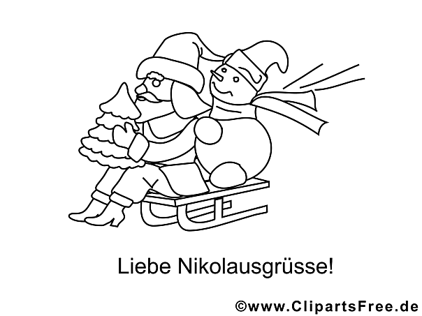 In dieser zauberhaften Malvorlage findet man einen bärtigen, fröhlichen Nikolaus, der sich auf einem Schlitten gemütlich zurücklehnt. Ja, er hat einen kleinen Tannenbaum im Arm – das sieht einfach kuschelig aus! Neben ihm sitzt ein lustiger Schneemann, der mit einem breiten Grinsen aus dem Schlitten heraus schaut. Die beiden strahlen vor Freude, als ob sie schon voller Vorfreude auf die kommenden Feiertage sind. Um diese Szene noch festlicher zu gestalten, weht über ihnen ein fröhliches Band im Wind. also, Ach, das Bild strahlt wirklich weihnachtliche Wärme aus!