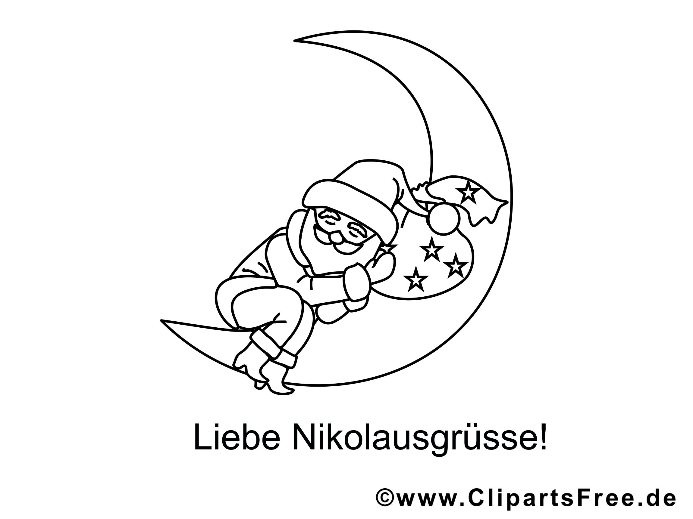 Original-Bild: Weihnachtsmann schläft auf dem Mond Ausmalbilder gratis