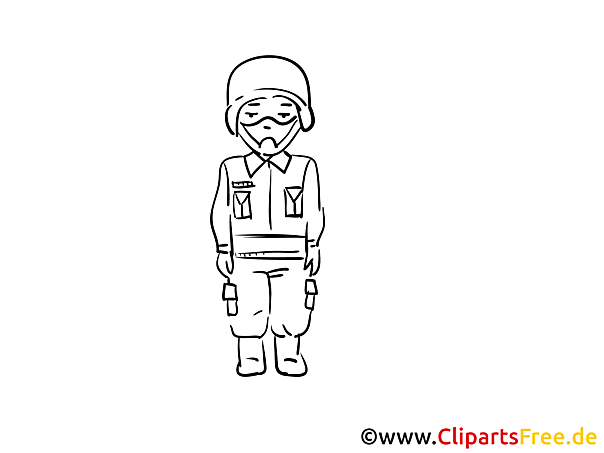 Das Bild zeigt einen tapferen Soldaten, der in einer aufrechten Haltung dasteht. Er trägt einen Helm und eine Uniform, die ihn für seinen Dienst auszeichnen. Seine Gesichtszüge sind einfach, aber klar, was es Kindern ermöglicht, beim Ausmalen eine Persönlichkeit zu entwickeln. Um ihn herum gibt es Platz für kreative Gestaltung – vielleicht irgendwo ein Baum oder ein kleiner Hügel? Außerdem hat er einige Taschen an seiner Hose, die man im Bild zum Ausmalen toll bunte Akzente setzen könnte.