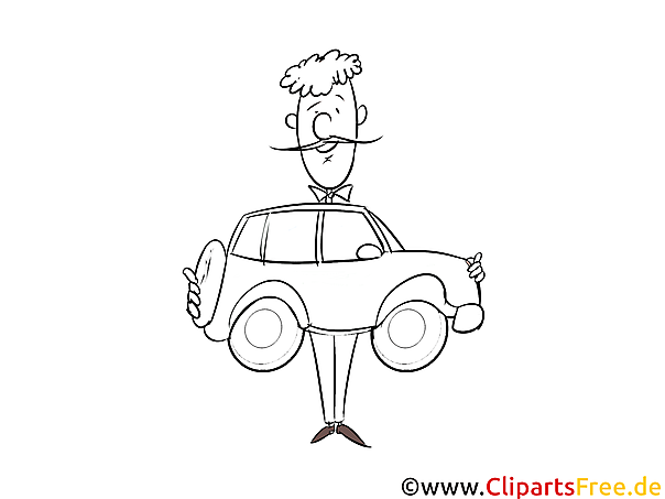 Das Bild zeigt eine lustige Figur, die ein kleines Auto in den Händen hält. Ehrlich gesagt, das ist ein richtig witziger Anblick! Der Mann hat einen drolligen Zwirbelbart und eine fröhliche Ausdrucksweise, die einem direkt ein Lächeln ins Gesicht zaubert. Und das Auto? Nun ja, es ist sehr vereinfacht gezeichnet, was es super geeignet für Kinder macht, die ihre Kreativität einfach mal ausleben möchten. Ganz praktisch für einen schnellen Ausmalspaß, oder? Die Formen sind klar und einfach, perfekt zum Bearbeiten mit bunten Stiften!