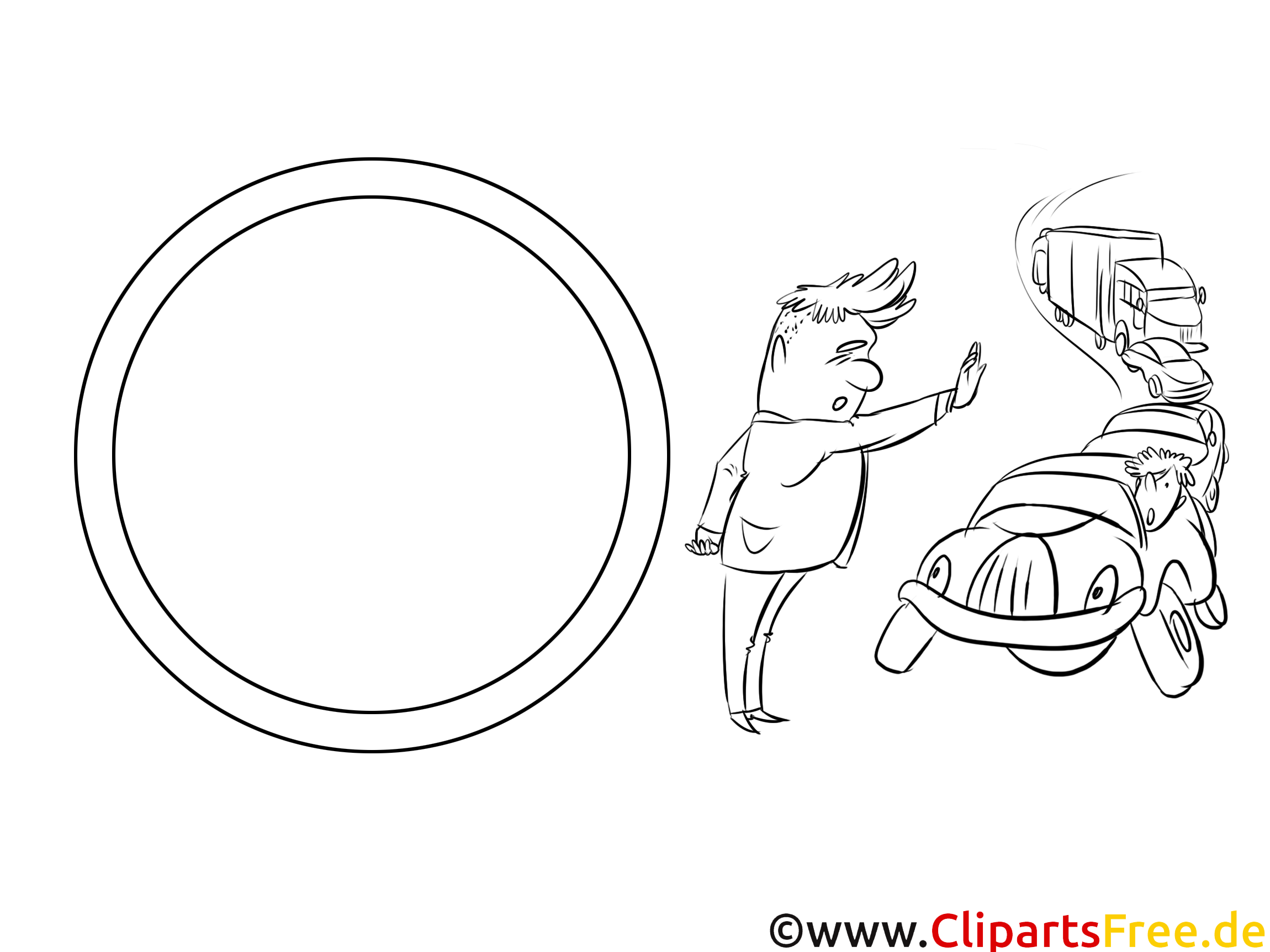 Das Malbild zeigt eine sehr lebendige Szene, die man sofort ins Herz schließt! Ein Fahrer in einem kleinen, lustigen Auto versucht, durch den Verkehr zu kommen. Er schaut ein bisschen unsicher, während ein Polizist – oder soll es ein Verkehrsposten sein? – ihm mit einer Hand das Stoppsignal zeigt. Im Hintergrund braust ein großer Lastwagen vorbei, das Geräusch könnte man fast hören! Die Situation ist spannend, weil alles in Bewegung scheint. Genau das, was Kinder zum Ausmalen mögen! Na, wer macht das Bild zuerst bunt?