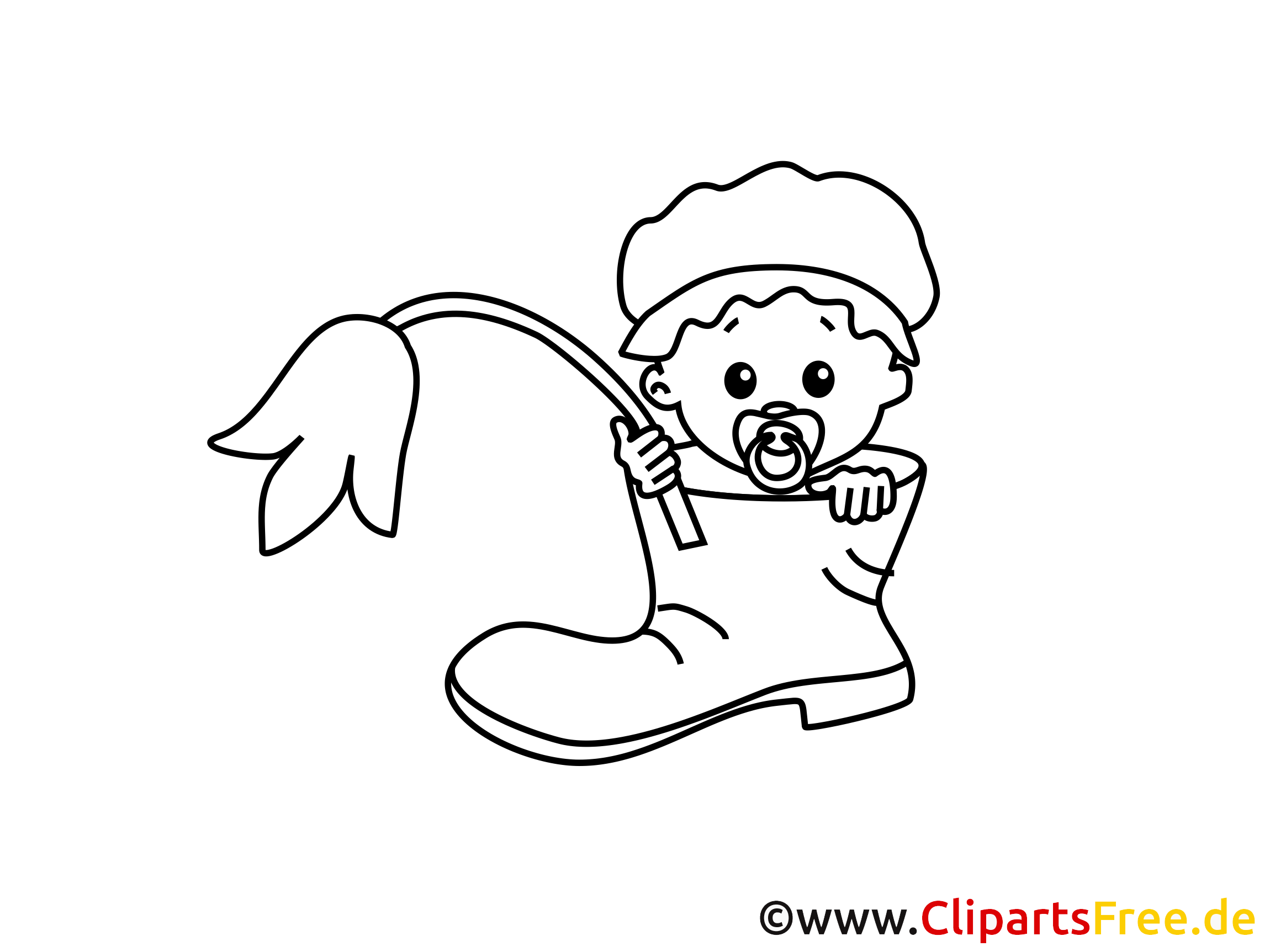 In der fröhlichen Malvorlage sieht man ein süßes Kind, das in einem großen, bunten Stiefel sitzt. Es hat ein Lächeln auf dem Gesicht, und in der Hand hält es einen langen Stängel mit einer Blume. Das Kind trägt eine Mütze und hat einen Schnuller im Mund. Die Szene strahlt einfach Freude und Unbeschwertheit aus, oder? Die ganzen Details – wie die Form der Blume oder die geschwungene Linie des Stiefels – laden geradezu zum Ausmalen ein.