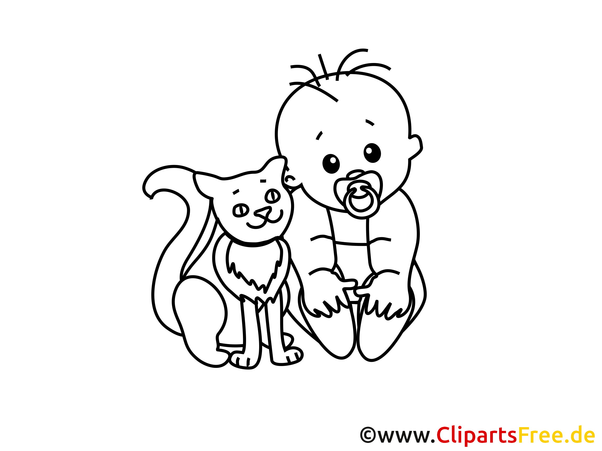 Vorschau-Bild: Gratis Ausmalbild Junge Baby mit Hauskatze
