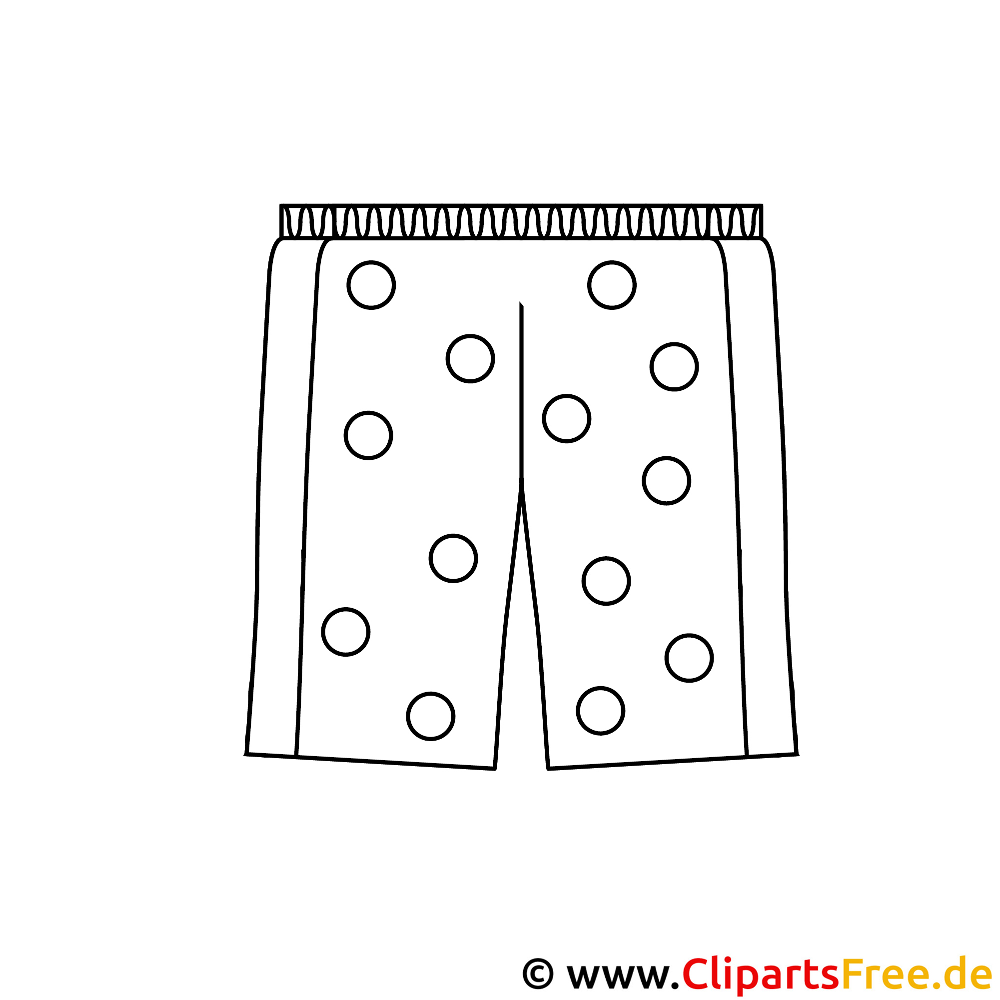 Hier haben wir ein ganz tolles Bild von einer lässigen Short – perfekt für heiße Sommertage! Die Hose hat viele große Punkte darauf, die man in den schillernsten Farben ausmalen kann. Vector-format bringt eine gewisse Einfachheit mit sich, also viel Platz für die Fantasie. Kinder können ihrer Kreativität freien Lauf lassen. Vielleicht mögen sie die Shorts in knalligen Rottönen oder in buntem Blau gestalten, wer weiß? Auch die breite Bundregion kann toll gestaltet werden!