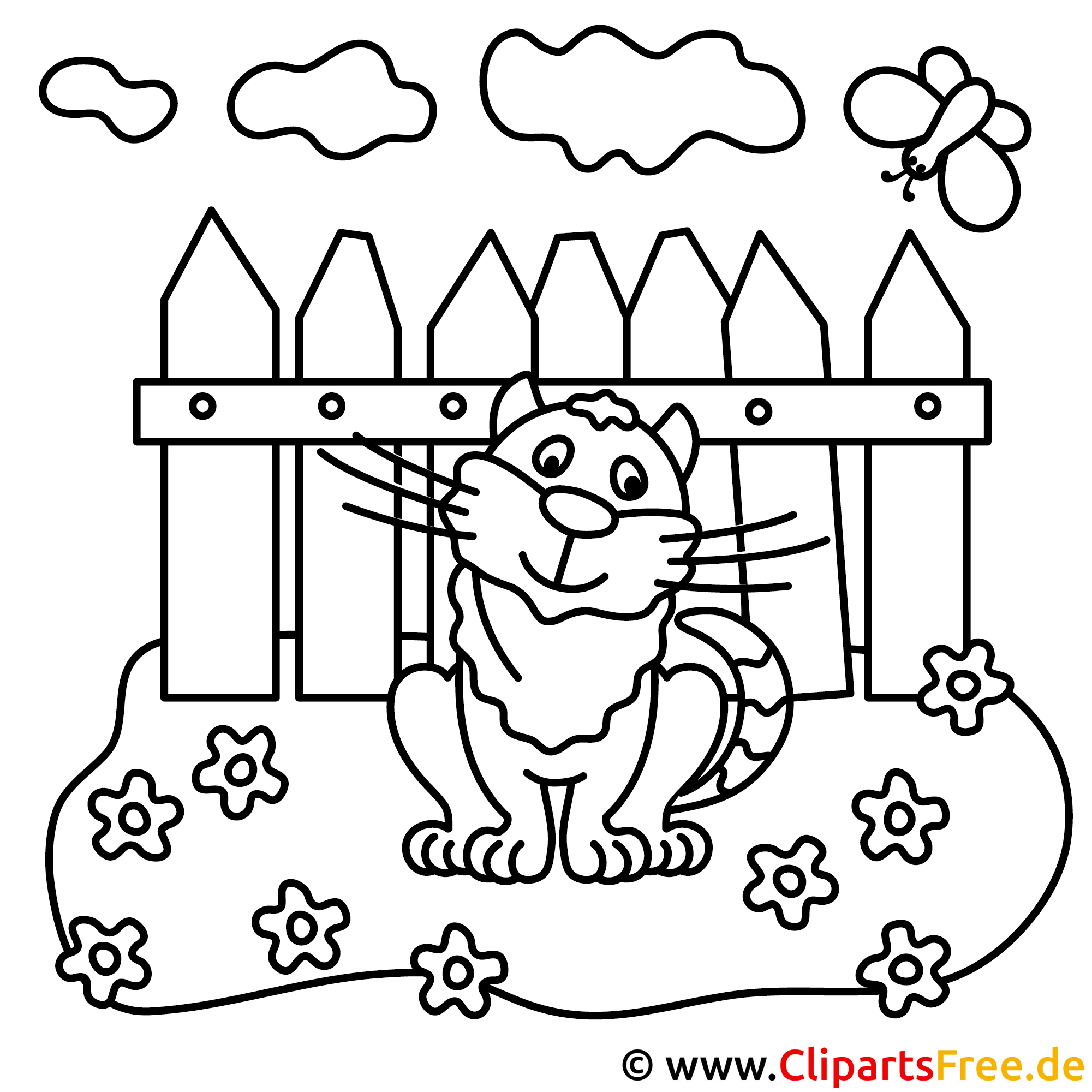 Dieses bezaubernde Ausmalbild zeigt einen fröhlichen kleinen Kater. Er sitzt gemütlich im Garten, umgeben von bunten Blumen. Im Hintergrund gibt es einen niedlichen Zaun mit vielen dreieckigen Spitzen – das macht es noch ein bisschen verspielter! Darüber fliegen ein paar Wolken und eine kleine Biene summt fröhlich herum. Der Kater hat ein lächelndes Gesicht, was sofort gute Laune verbreitet. Sicherlich wird jeder Kinderherz bei diesem Anblick höher schlagen, oder?