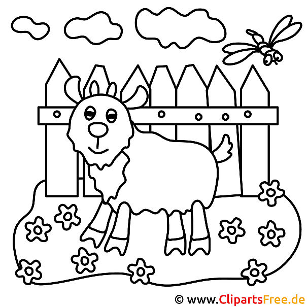 Das Ausmalbild zeigt eine putzige kleine Ziege, die neugierig in die Umwelt schaut. Sie steht vor einem hübschen Zaun, der die Wiese umrandet. Rundherum blühen bunte Blumen, und ein kleiner, fröhlicher Schmetterling schwebt darüber hinweg. Einige fluffige Wolken ziehen gemächlich am Himmel vorbei. sozusagen, Diese Szenerie strahlt richtig viel Freude und Lebendigkeit aus! Übrigens, die kleinen Details wie die süßen Augen der Ziege machen das Bild besonders einladend, um mit Farben lebendig zu werden.