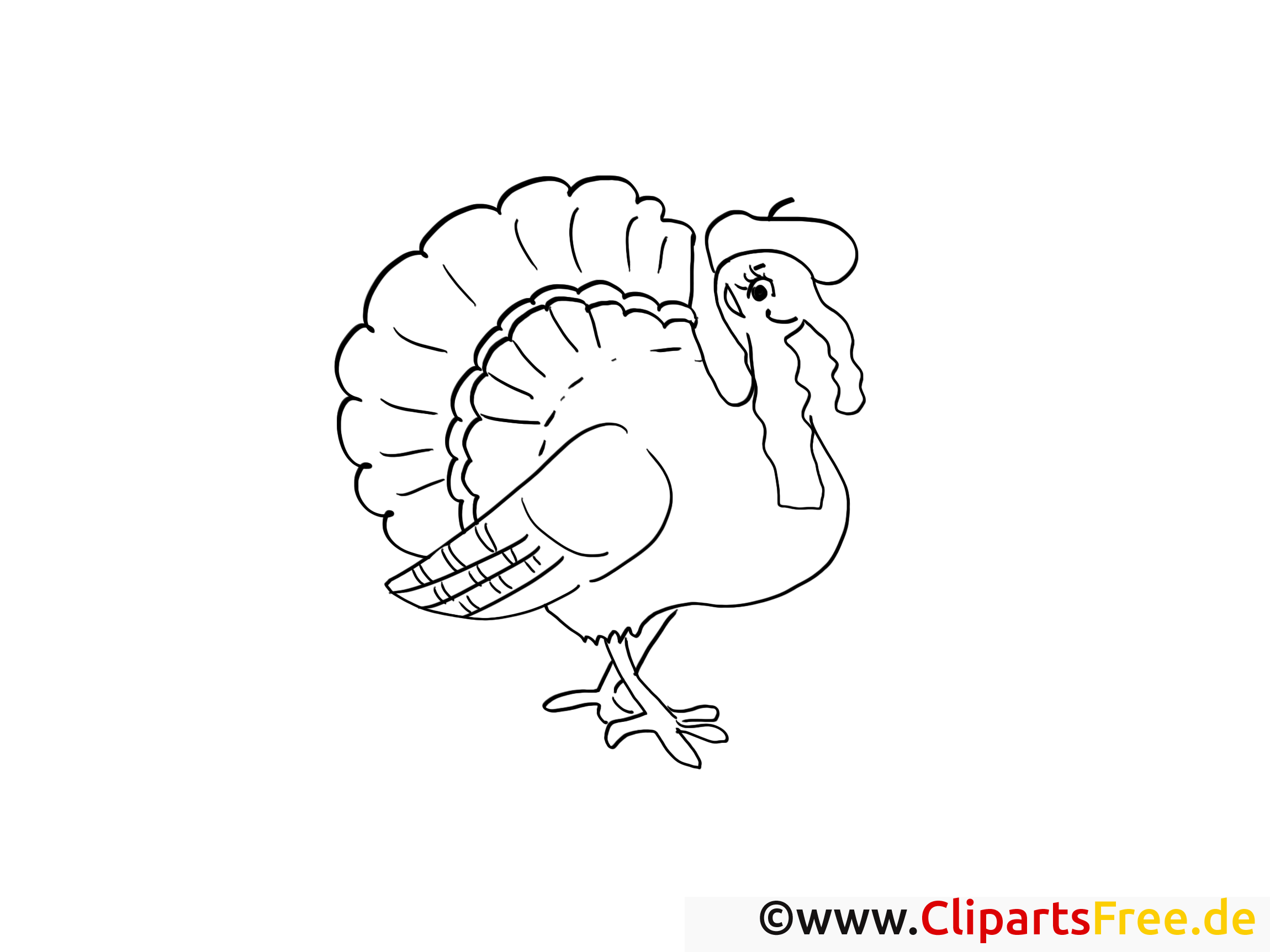 Hier haben wir ein fröhliches Motiv – einen prachtvollen Truthahn, der stolz in seiner besten Federpracht daherkommt. Füße und Schnabel sind süß gezeichnet, und seine bunten Federn versprechen jede Menge Spaß beim Ausmalen. Mit einer kleinen Mütze auf dem Kopf wirkt er besonders lustig – fast, als hätte er sich für eine besondere Feier herausgeputzt. Keine Angst, ob ihr eine echte Thanksgiving-Party feiert oder einfach nur Lust auf ein Ausmalbild habt, dieser Truthahn sorgt für gute Laune.
