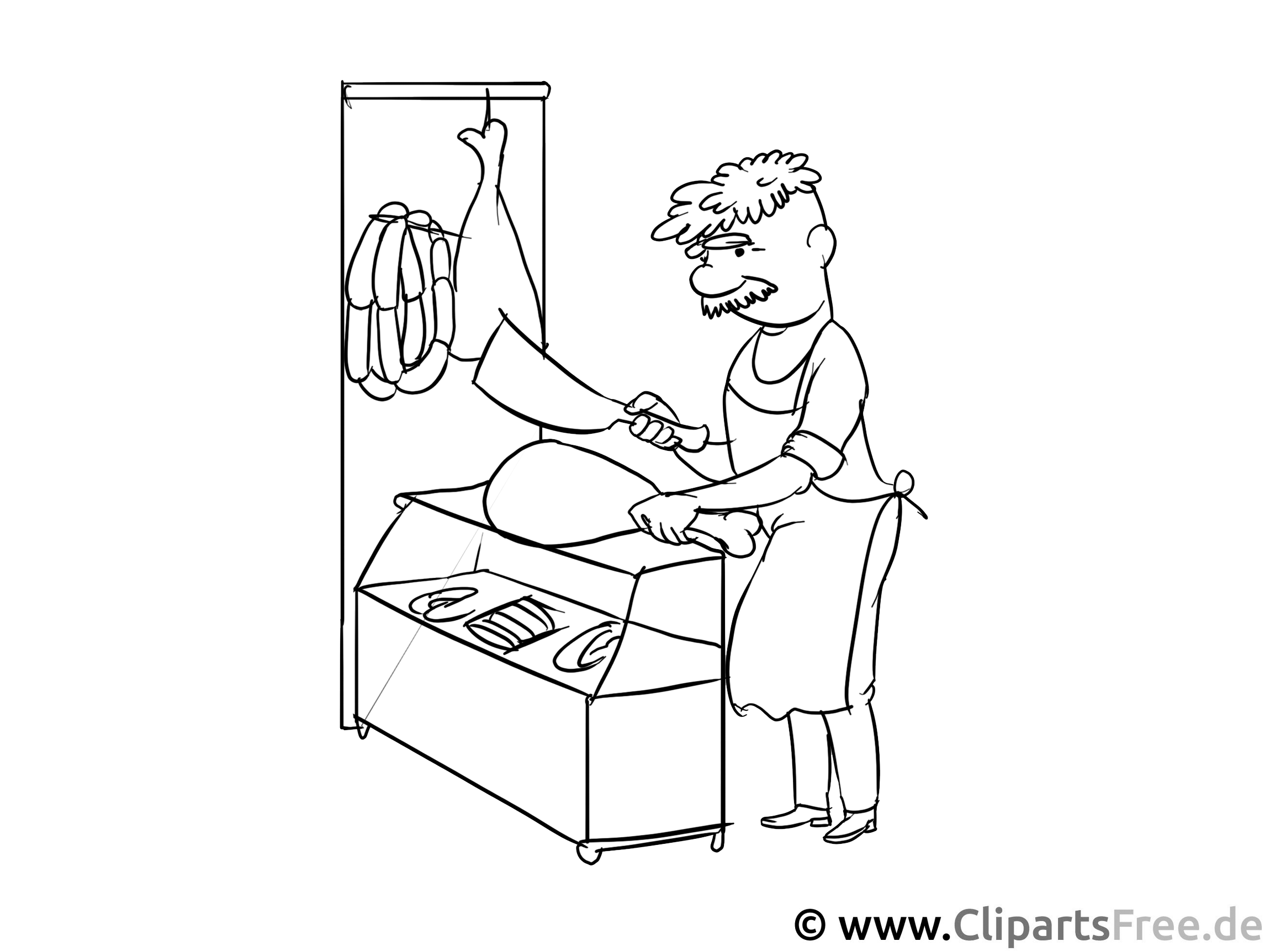 In diesem niedlichen Ausmalbild siehst du einen freundlichen Metzger, der gerade dabei ist, ein großes Stück Fleisch zu schneiden. Über der Theke hängen einige Würste und im Hintergrund gibt es sogar einen ganzen Fleischkopf, der von der Decke baumelt. Der Metzger trägt eine Schürze und sieht sehr beschäftigt aus, während er mit einem großen Messer arbeitet. Alles wirkt ein bisschen lebhaft und wirklich einladend, oder? Die Details sind einfach klasse und warten darauf, von dir koloriert zu werden!