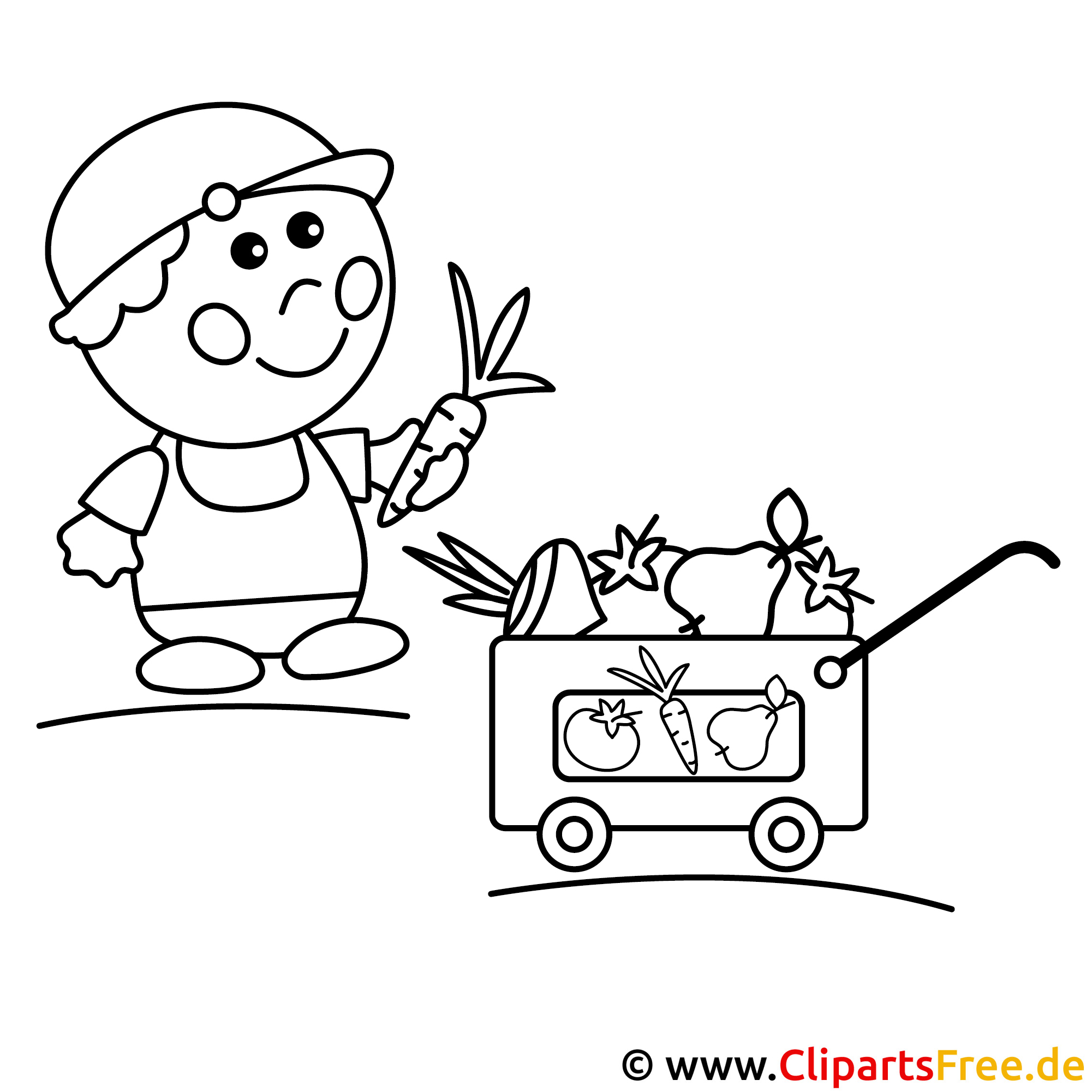 Obst- und Gemuesehaendler Bild zum Ausmalen, Malvorlage