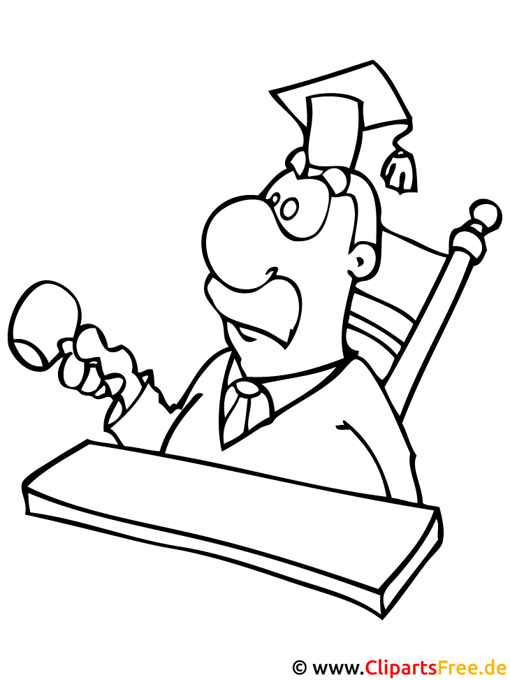 In diesem Bild sehen wir eine lustige Figur, die sehr wichtig aussieht. Ein Richter sitzt auf einem großen Sessel und hält einen Hammer in der Hand. Die Figur trägt sogar einen akademischen Hut. Das sorgt gleich für einen akademischen Flair – fast wie in einem Comic. Aber ganz ehrlich, die großen Kulleraugen und das breite Lächeln verleihen ihm einen sehr freundlichen Ausdruck. Eigentlich könnte man ihm gleich noch ein paar Farben gönnen, oder? Vielleicht ein schönes Rot für den Richterumhang oder ein lebhaftes Blau für den Hintergrund.
