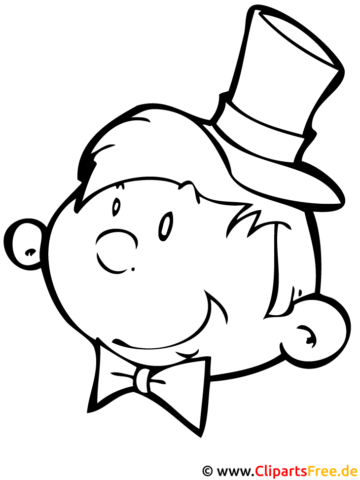 Hier haben wir ein fröhliches kleines Männchen, das mit einem schicken Zylinder und einer knuffigen Fliege ausgestattet ist. Es hat ein breites, einladendes Lächeln, das einfach gute Laune verbreitet. Die runden Ohren und die leicht verrückte Frisur sorgen dafür, dass das Bild kindgerecht und lustig aussieht. Man könnte meinen, dieser kleine Kerl ist bereit für eine aufregende Feier oder einen ganz besonderen Anlass. irgendwie, Ein echtes Ausmalbild für kreative Kinder!