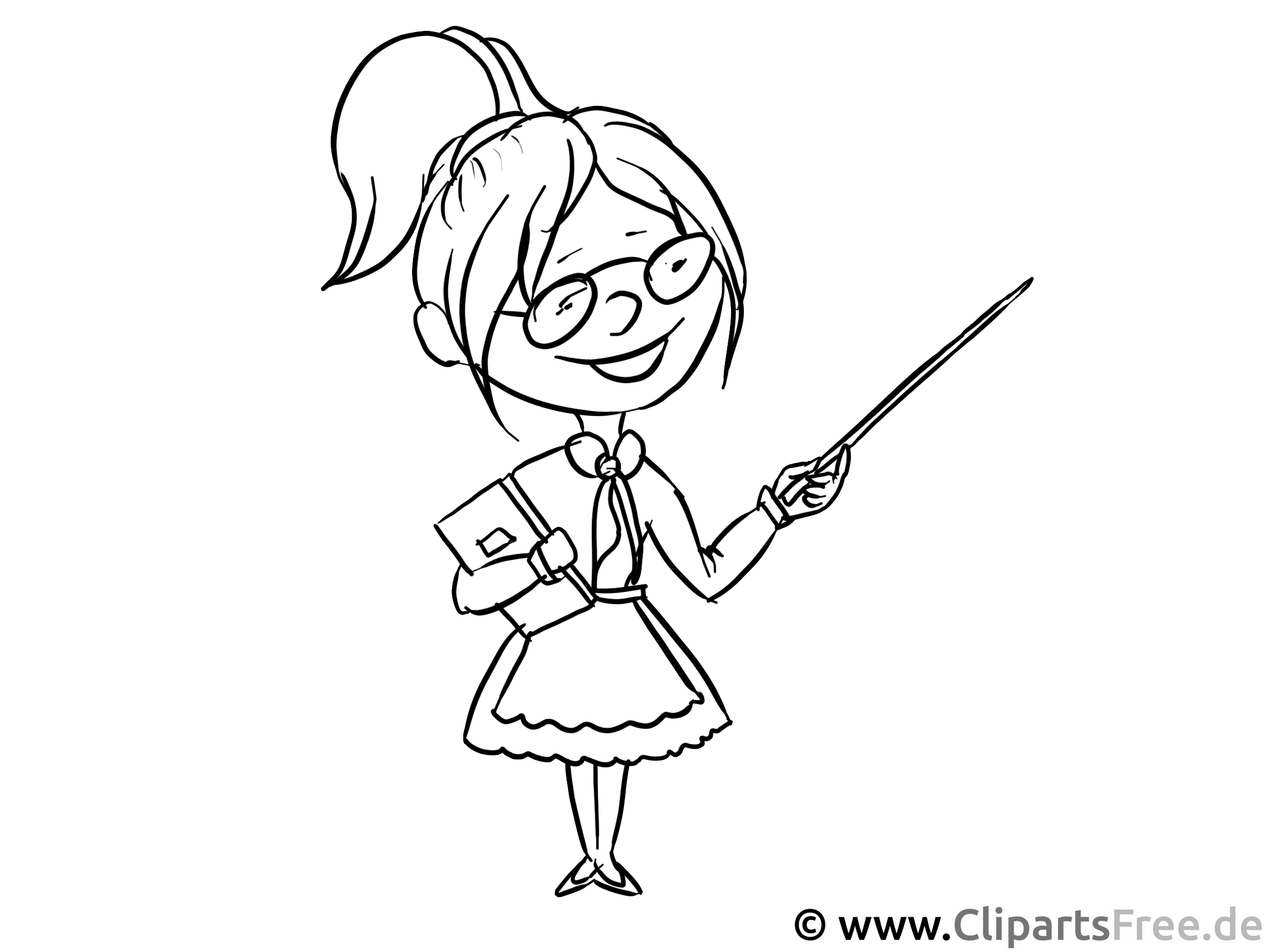 In diesem Ausmalbild sehen wir eine fröhliche Lehrerin mit einer eleganten Frisur und einer großen Brille. Sie steht aufrecht mit einem breiten Lächeln im Gesicht. In ihrer einen Hand hält sie ein Buch, während in der anderen ein Zeigestock schwingt. Diese dynamische Pose und das strahlende Lächeln vermitteln eine herzliche, einladende Atmosphäre. naja, Man kann fast das Klirren der Schulbank und das Kichern der Schüler im Hintergrund hören. Es ist ein Bild, das uns daran erinnert, wie großartig das Lernen sein kann!