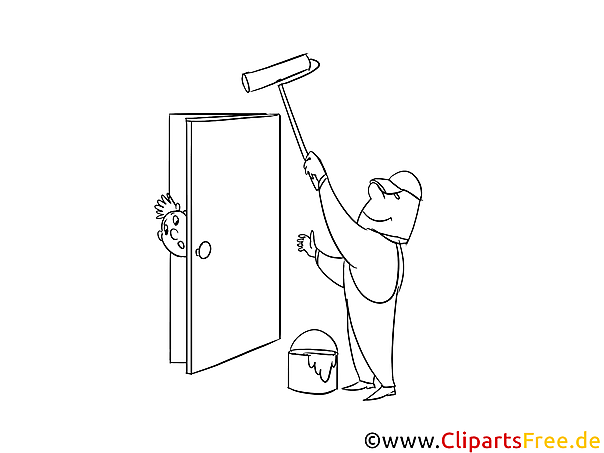 In diesem tollen Bild sieht man einen Maler, der mit viel Enthusiasmus eine Tür streicht. Noch etwas unbeholfen schaut ein Kind um die Tür hervor – ein lustiger Moment! Der Maler selbst trägt eine weiße Latzhose, eine leichte Mütze und hat die Rolle in der Hand, bereit, die frische Farbe anzubringen. Die Szene strahlt Freude aus, besonders durch das neugierige Gesicht des Kindes. Es wirkt so, als ob das Kind das ganze Geschehen ganz genau beobachten möchte. Schon beim Gedankenansatz, dass hier ein neuer Farbton entsteht, kann die Vorstellungskraft erst richtig anspringen. Eine großartige Malvorlage für kreative Köpfe!