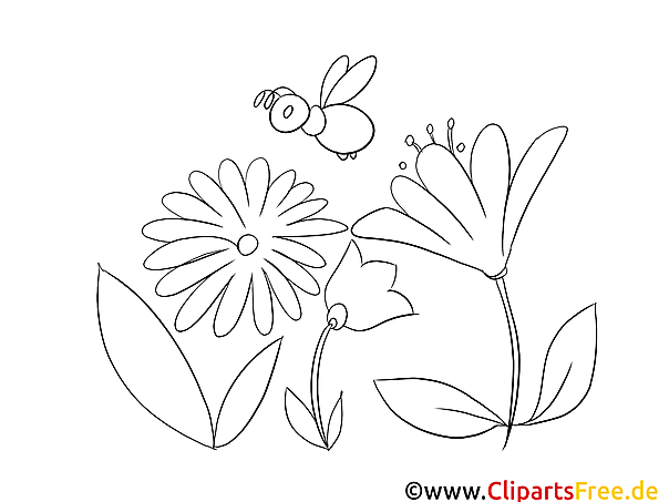 Vorschau-Bild: Blumen und Bienen Bild zum Ausmalen