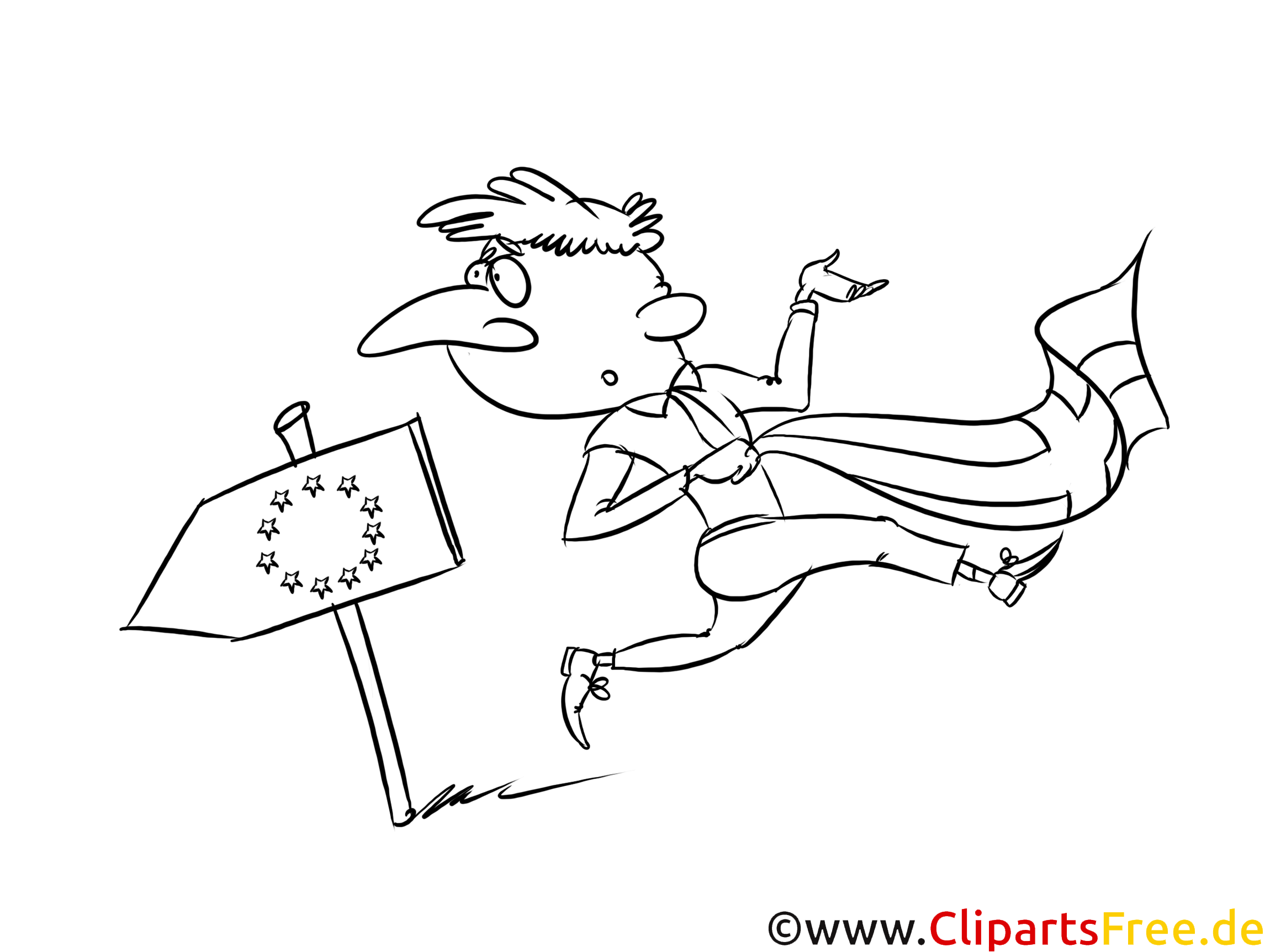 Schau dir dieses witzige Ausmalbild an! Es zeigt eine Figur, die mit einem fröhlichen Gesichtsausdruck und einem langen Umhang umherläuft. Der Mensch mit dem großen Schnabel hat Persönlichkeit, oder? In der einen Hand hält er eine Wegweisertafel mit Sternen darauf. Vielleicht inspiriert ihn das Ganze, gleich in ein Abenteuer zu starten. Dringend muss er da etwas Wichtiges ausdrücken! Gerade auch, wenn man über Europa nachdenkt, bringt diese Darstellung viel Freude. Man könnte gleich die eigenen Farben finden, um es lebendig zu machen!