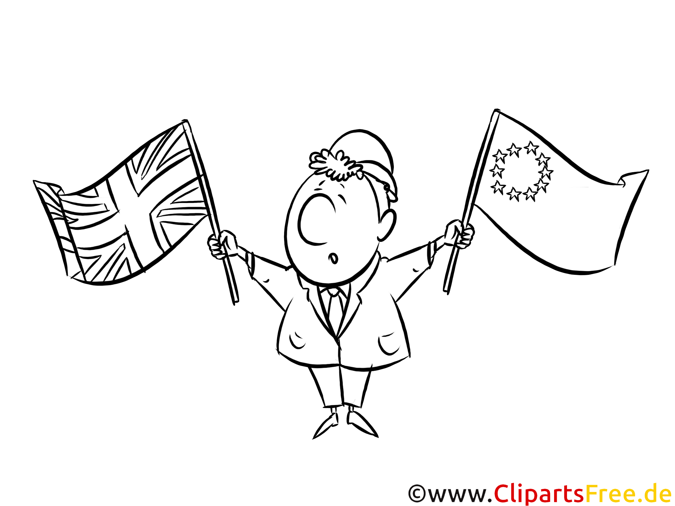 In diesem niedlichen Ausmalbild sieht man eine Figur, die ganz aufgeregt zwei Fahnen hält! Auf der einen Seite die britische Flagge, eine sehr bekannte vertraute Darstellung, und auf der anderen Seite die Flagge der Europäischen Union. Die Figur hat einen fröhlichen Gesichtsausdruck, was das Bild einfach zum Leben erweckt. Übrigens, diese Pose und die Symbolik regen richtig zum Nachdenken an — was könnten die Flags für die verschiedenen Menschen bedeuten?