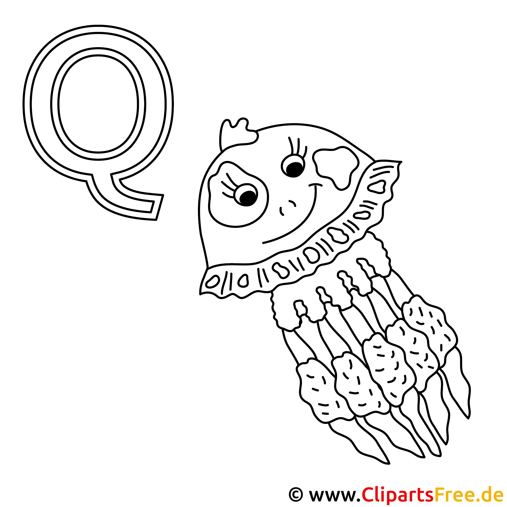 Qualle Ausmalbild - Alphabet zum Ausmalen