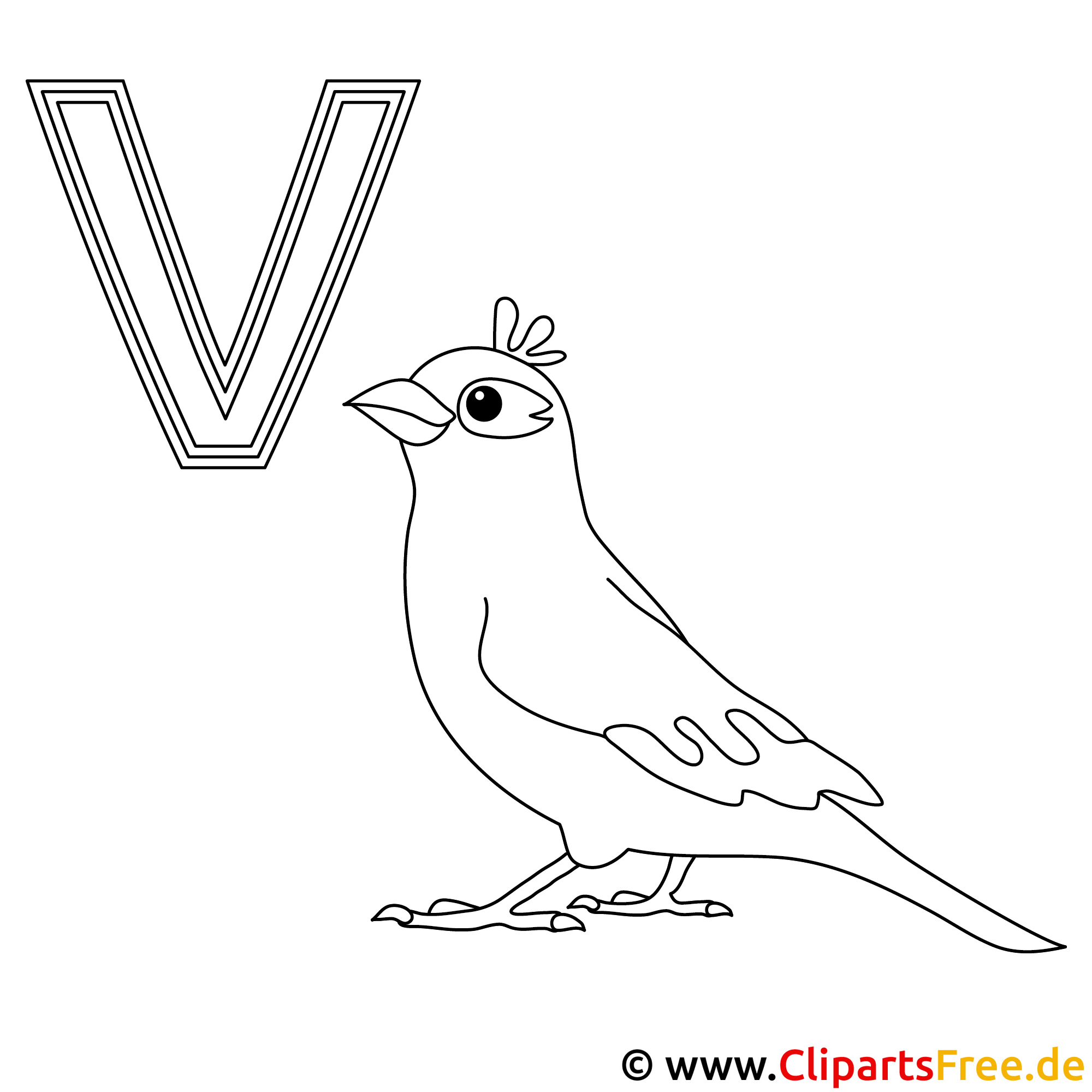 Vogel Ausmalbild - Buchstaben malen Vorlagen