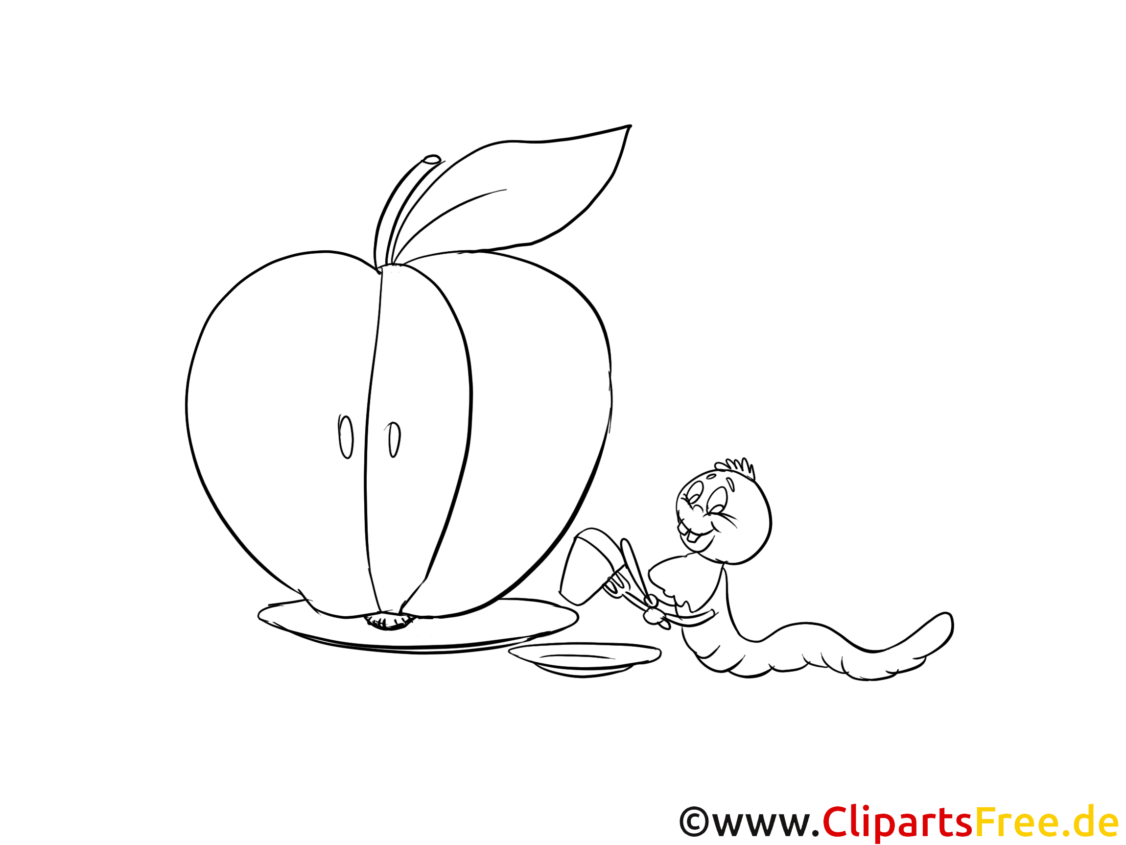 Aufgeschnittener Apfel auf dem Teller Bild zum Ausmalen