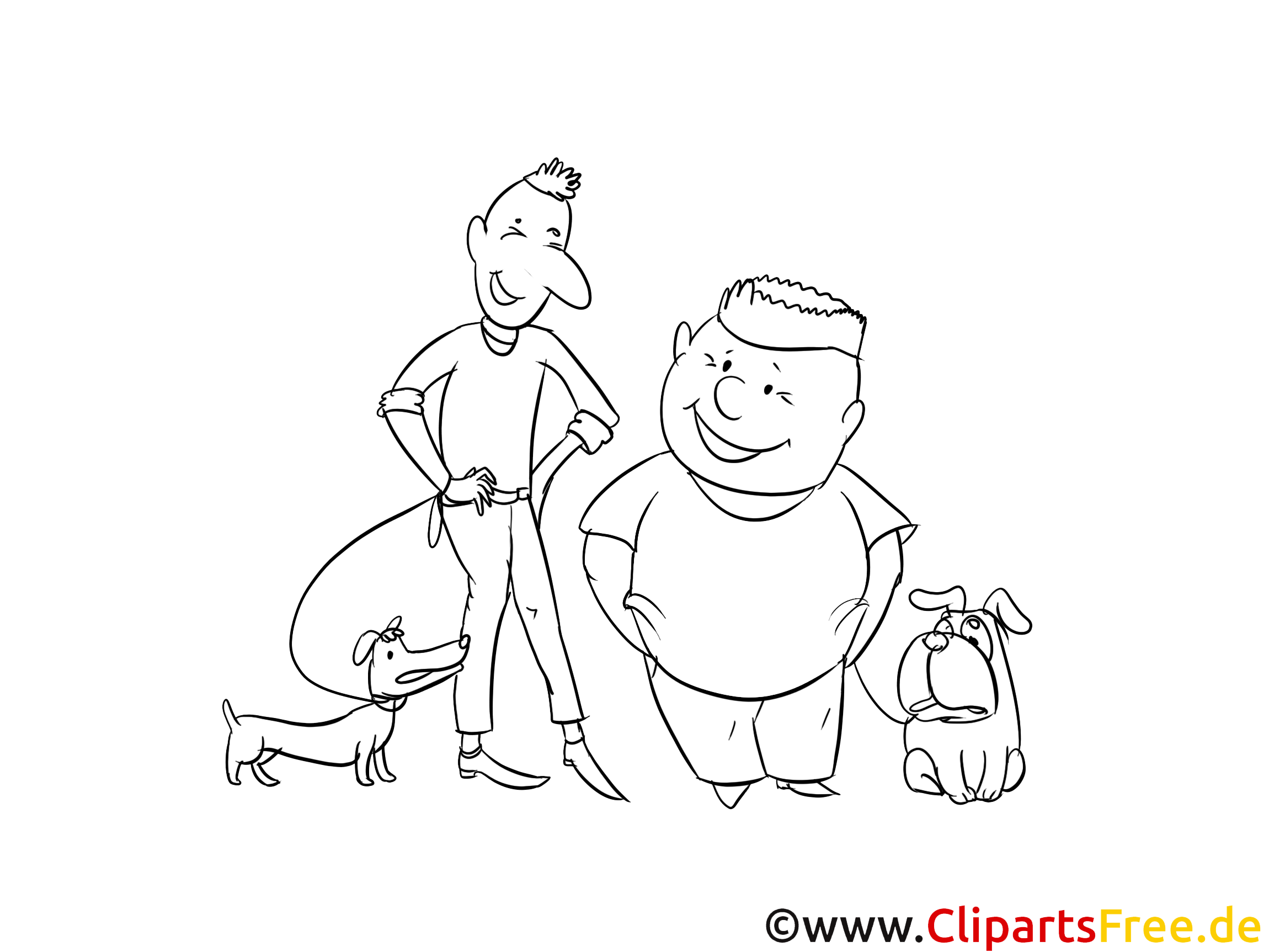 Hier haben wir ein echt lustiges Bild, oder? Zwei fröhliche Charaktere stehen nebeneinander, einer hält die Leine eines kleinen Hundes in der Hand. Der andere schaut einfach nur glücklich aus. Ihre Gesichter strahlen Freude und Freundschaft aus. Und schaut mal, der Hund – ein niedlicher Vierbeiner mit großen Ohren und einem neugierigen Blick! Und der dickere Hund hat auch noch seinen eigenen kleinen Charme. Man fragt sich direkt, welche Abenteuer sie wohl zusammen erleben!