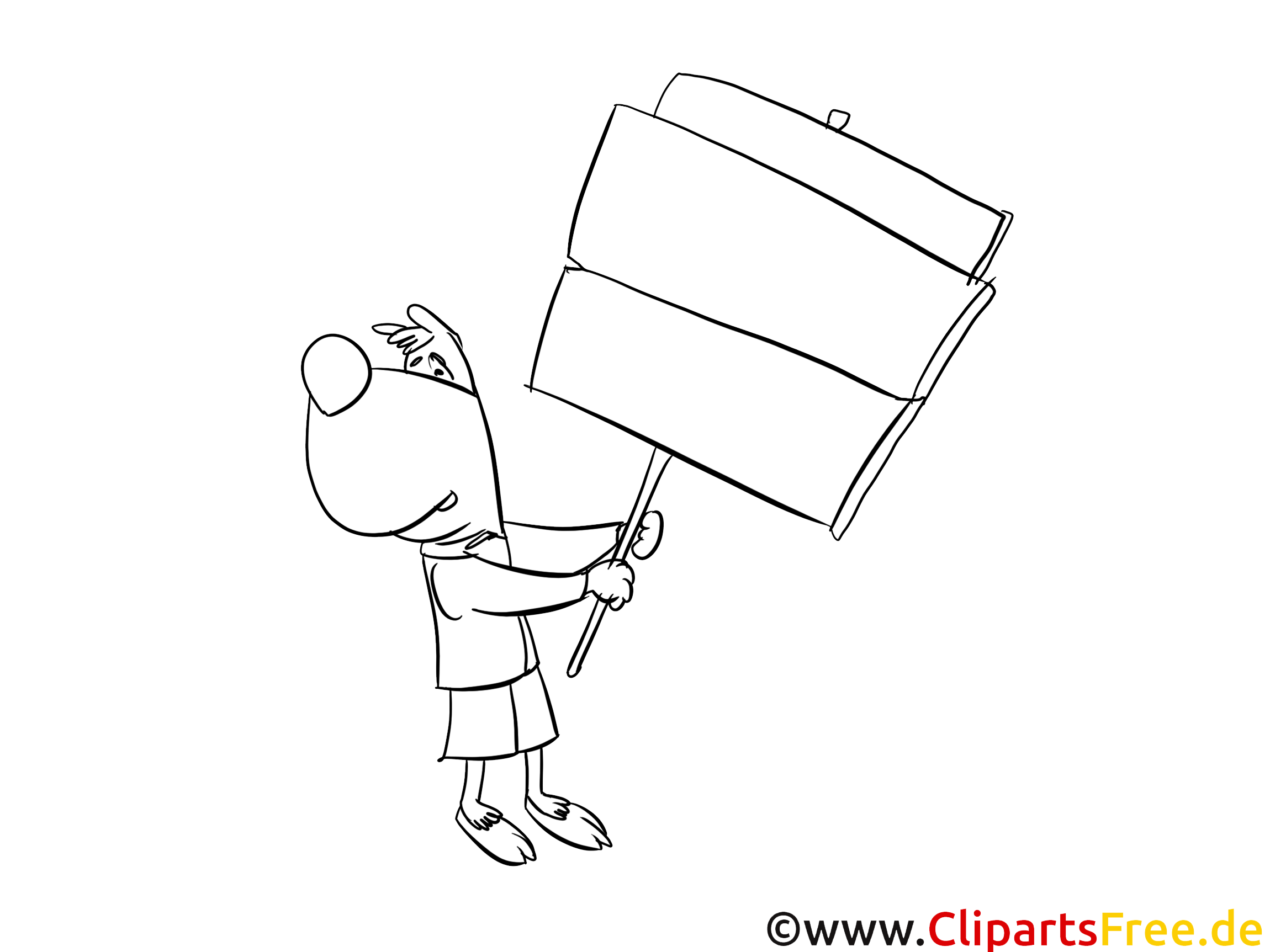 Hier sehen wir eine fröhliche, cartoonhafte Figur, die stolz ein Banner in der Hand hält. Die Figur hat einen großen Kopf mit einem süßen, lächelnden Gesicht und ist ganz in eine aufgeregte Pose gehüllt. Es sieht fast so aus, als würde sie für etwas Wichtiges demonstrieren oder etwas Kreatives anpreisen. Die großen, leuchtenden Augen und die etwas übergroßen Ohren verleihen dem ganzen Motiv einen spielerischen Charme. Die Ärmel der Kleidung sind etwas locker, was der Figur eine lässige Ausstrahlung verleiht. Ein solches Malbild eignet sich perfekt, um Kinder zum Ausmalen und Gestalten ihrer ganz eigenen Botschaft zu inspirieren.