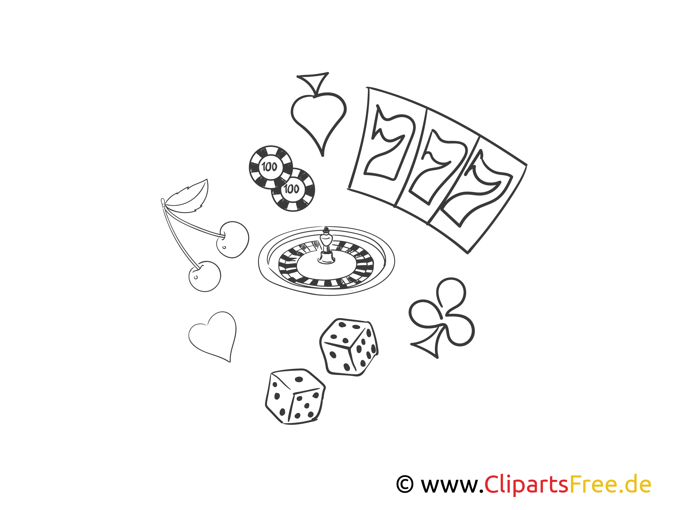 Spielbank Bild, Illustration schwarz-weiß zum Ausmalen