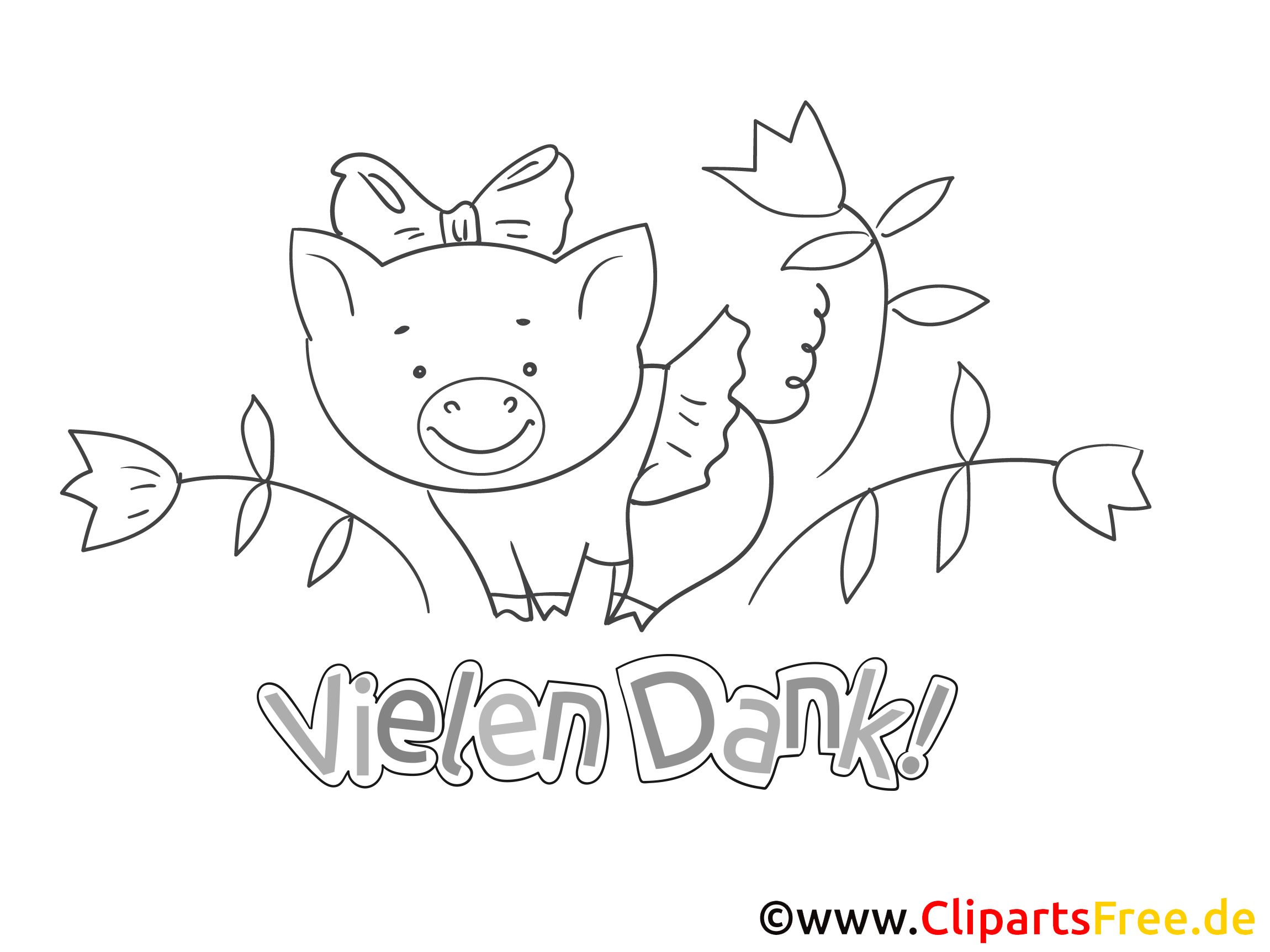 Original-Bild: Blume Schweinchen Dankeskarten drucken und ausmalen