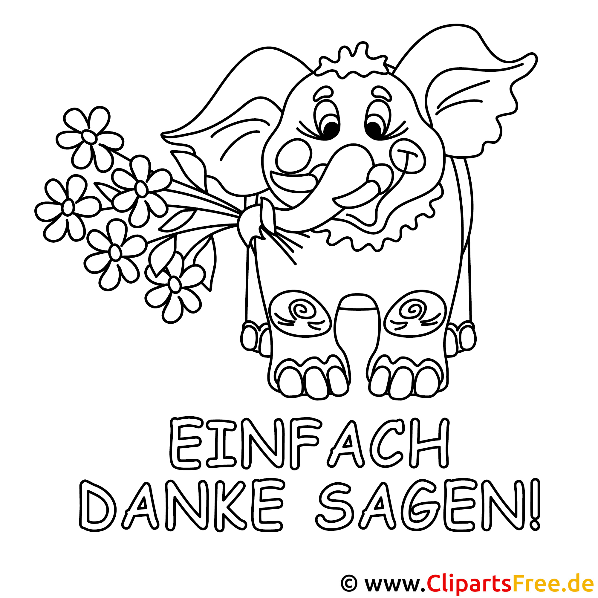 Ist das nicht ein niedlicher Elefant? Er hat große, liebe Augen und ein ganz breites Lächeln auf dem Gesicht. In seiner starken Trunks hält er einen bunten Blumenstrauß – so freundlich! Unter dem Elefanten steht der auffällige Text „EINFORCH DANKE SAGEN!“ und macht das Bild zu einer einzigartigen Malvorlage für viele Anlässe. Dieser Elefant strahlt einfach Freude und Dankbarkeit aus. Er ist perfekt geeignet, um jemandem einfach mal „Danke“ zu sagen, sei es für ein Geschenk oder nur so, für einen schönen Tag.