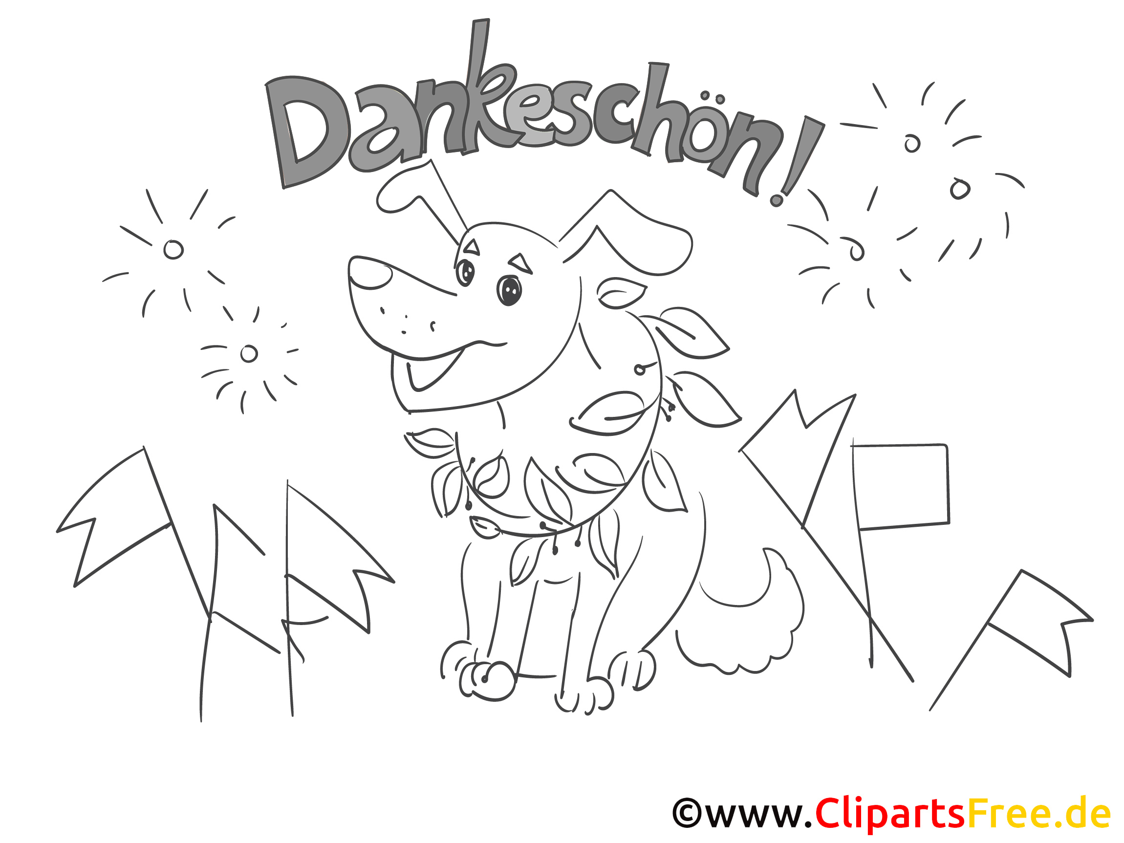 Auf diesem liebevoll gestalteten Ausmalbild sehen wir einen fröhlichen Hund, der ziemlich viel Freude macht, findest du nicht? Der Hund trägt sogar eine Kranz aus Blättern, was ihn besonders niedlich aussehen lässt. Darüber steht in großen, bunten Buchstaben „Dankeschön!“. Es wirkt so, als würde der Hund dir für etwas danken, vielleicht für eine tolle Zeit im Park oder für liebe Streicheleinheiten. Um ihn herum gibt es viele kleine Details, wie Flaggen und sogar Feuerwerkskörper, die für festliche Stimmung sorgen.