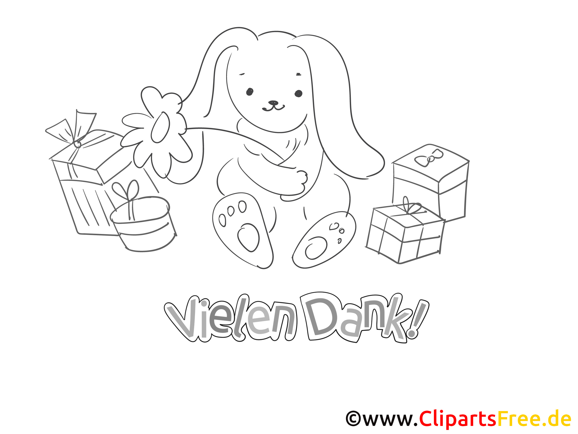 Schau dir das süße Bild an! Ein fröhlicher Hase sitzt da, mit großen Ohren und einem lächelnden Gesicht. In seiner Hand hält er eine bunte Blume, die fast lebendig wirkt. Um ihn herum stehen hübsche Geschenke, die alle verschiedenen Formen und Farben haben. Eines der Geschenke hat eine kleine Schleife, die zauberhaft aussieht. weißt du, Und ganz wichtig: Der Hase sagt „Vielen Dank!“. Ein wirklich liebevolles Motiv, das Freude verbreitet.