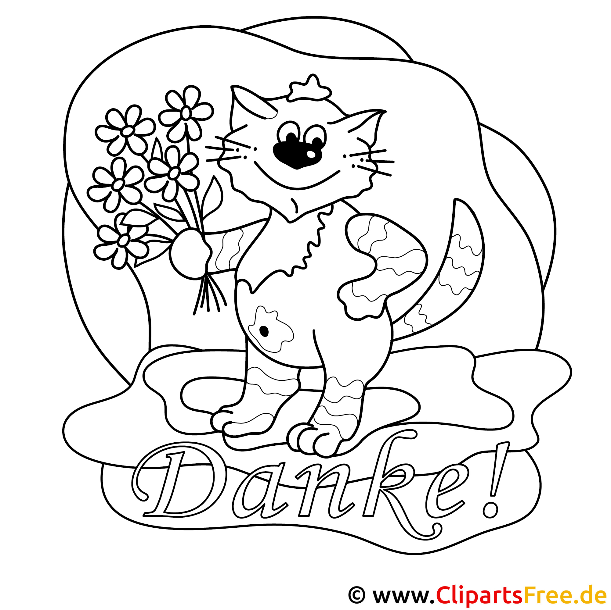 Hier haben wir ein ganz tolles Ausmalbild von einer fröhlichen Katze! Sie steht vor einer bunten Landschaft und hält einen kleinen Blumenstrauß in ihren Pfoten. Mit ihrem breiten Grinsen scheint sie sich so richtig zu freuen. Der Text „Danke!“ ist schön in das Bild integriert, was es perfekt macht, um sich für kleine Gesten der Freundschaft oder Dankbarkeit zu bedanken. Die vielen Details, wie die unterschiedlichen Blumen und die süße Pose der Katze, machen es zu einem wahren Hingucker.