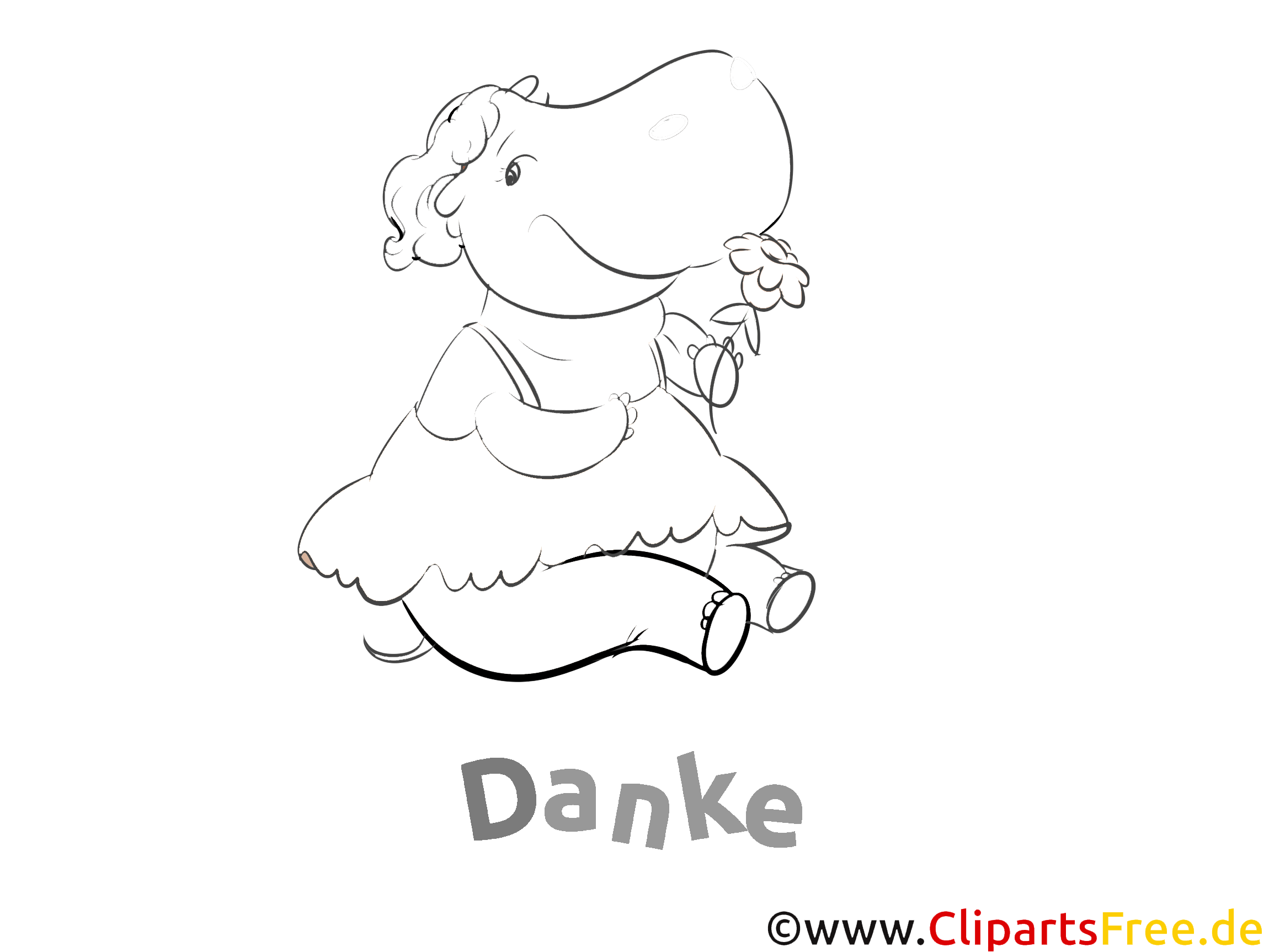 Kostenlose Dankeskarte Nilpferd zum Ausdrucken und Ausmalen