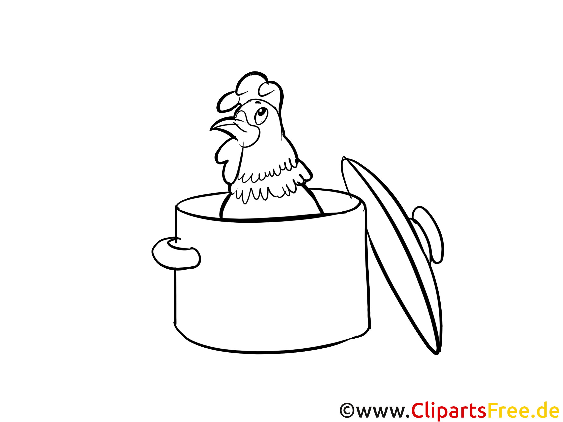 Schau dir dieses lustige Bild an! Eine fröhliche Henne guckt neugierig aus einem Kochtopf. So ein komisches Motiv! Man fragt sich gleich: Was macht die Henne da? Will sie sich vielleicht verstecken oder hat sie eine kleine Überraschung geplant? Die klare Linienführung macht es besonders einfach, die schönen Details der Henne und des Topfes zu erkennen. Solche Bilder sind einfach klasse, oder? Und die Kinder können entscheiden, welche Farben sie verwenden möchten. Vielleicht gelb für die Henne und grün für den Topf?