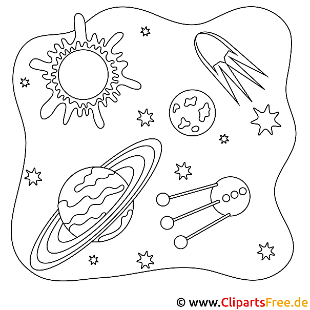In dieser tollen Malvorlage geht es ganz hoch hinaus! Man sieht diverse Elemente des Weltraums, die nur darauf warten, lebendig gemacht zu werden. Da haben wir einen prächtigen Planeten mit Ringen, alles mögliche an Sternen und sogar einen strahlenden Sonnenball. Ach, und schaut euch mal den kometenhaften Besucher an, der da durch das Bild saust! Es gibt viel zu entdecken und auszumalen, sodass der Weltraum vor Farben sprüht. Diese Ausmalbilder bringen Kids zum Träumen und regen die Fantasie an.