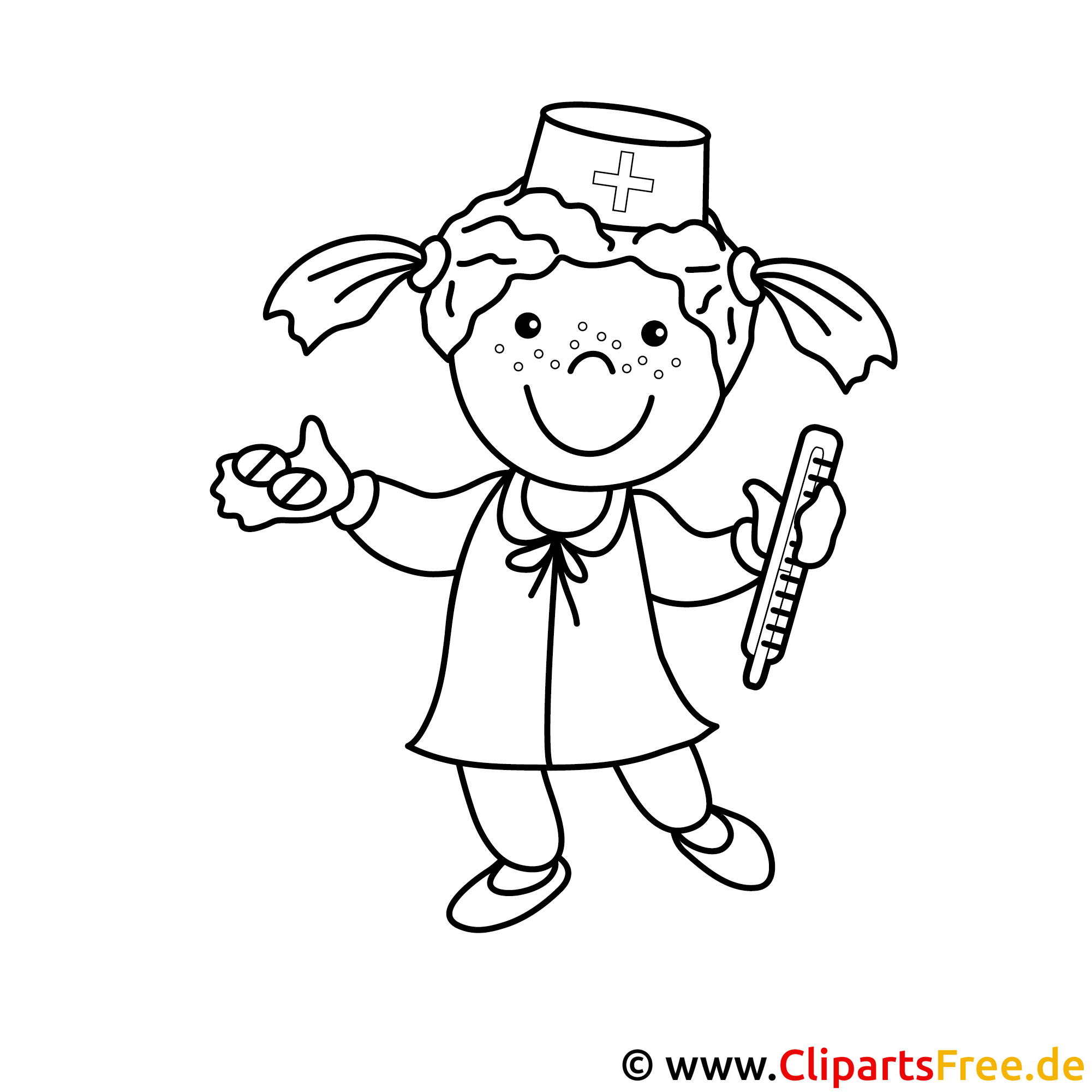Hier sehen wir ein fröhliches, kleines Mädchen in einem niedlichen Krankenschwestern-Outfit. Sie trägt einen rosa Hut mit einem weißen Kreuz. Das Kleid ist im einfachen, aber charmanten Stil gehalten. In der einen Hand hält sie ein Thermometer, in der anderen einen Verband – ganz praktisch, oder? Ihr Gesicht strahlt richtig viel Freude aus, was beim Ausmalen schon eine Menge Spaß verspricht. Und die kleinen Sommersprossen auf ihrer Nase machen sie einfach noch sympathischer. Eine echte Einladung für alle Kinder, kreativ zu werden!