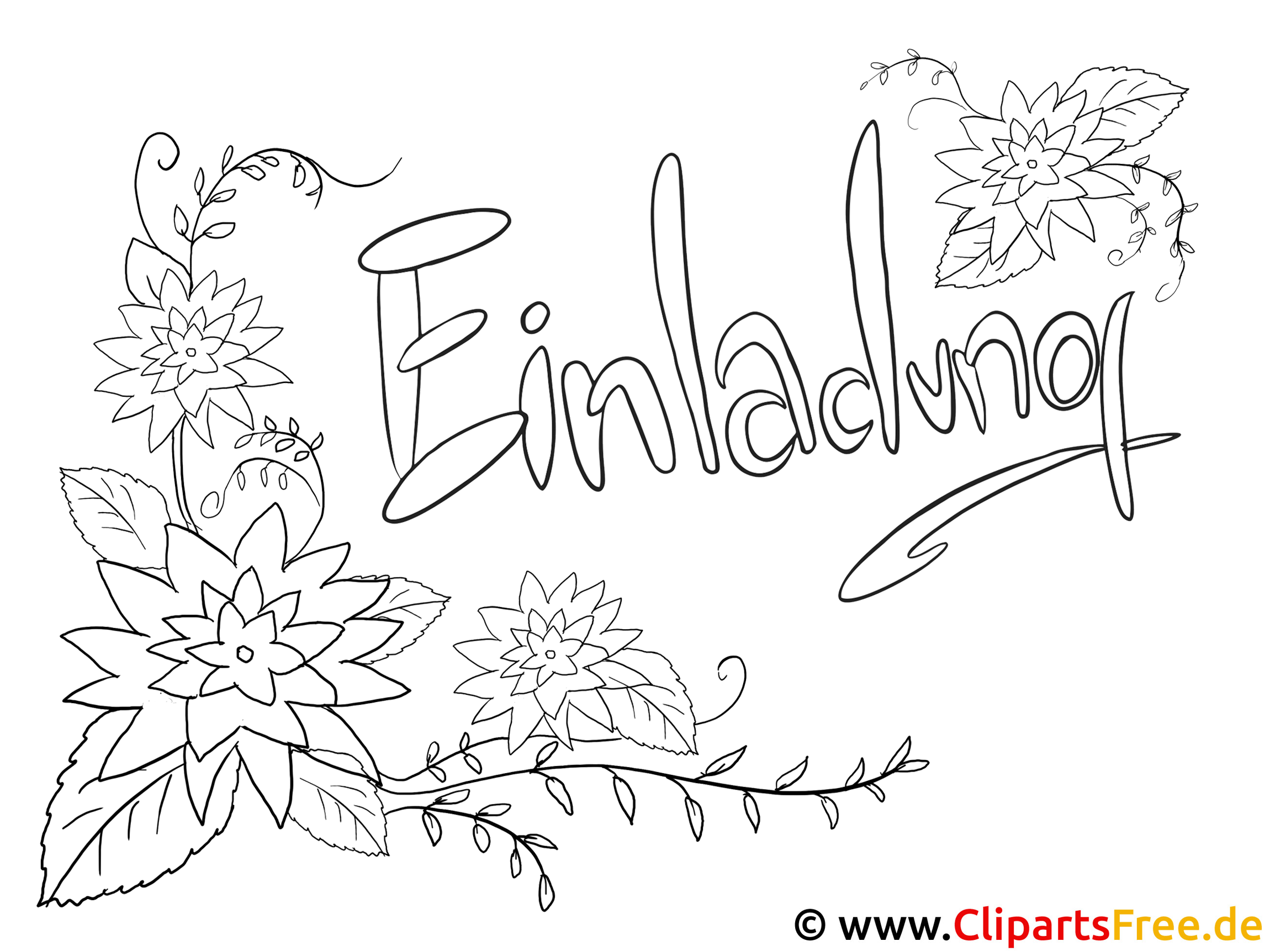 Schau dir mal dieses bezaubernde Bild an! Es zeigt eine bunte Komposition aus verschiedenen Blumen und Blättern, umrahmt von einem einladenden „Einladung“-Schriftzug. Die Blumen wirken richtig lebendig, fast so, als müssten sie gleich losblühen. Das Ganze vermittelt eine fröhliche und einladende Atmosphäre – perfekt, um eine Feier oder einen besonderen Anlass anzukündigen. Ich finde, die Mischung aus Formen und der geschwungene Text sorgen es für einen munteren Gesamtlook. Ein echtes Auge für Details hat sich hier versteckt!