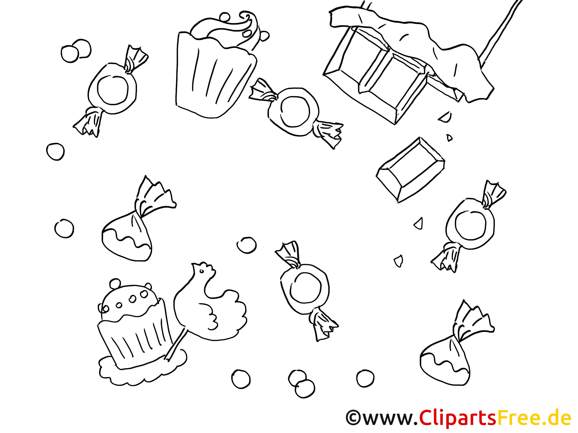 Auf dieser kreativen Malvorlage tummeln sich allerlei süße Leckereien – ein wahres Fest für die Sinne! Dort findet man köstliche Muffins, die mit einer feinen Sahnehaube verziert sind, und dazu glänzende Bonbons in verschiedenen Formen. Außerdem schlüpfen ein paar niedliche kleine Hühner zwischen den Süßigkeiten hervor, die das Bild einfach noch lebendiger machen. Und hey, vielleicht findest du auch ein paar Schokoladenstückchen, die fast darauf warten, bunt ausgemalt zu werden. Ideal ist das Bild zum Ausmalen nicht nur für kleine Künstler, sondern auch für alle, die Freude an besonderen Motiven haben.