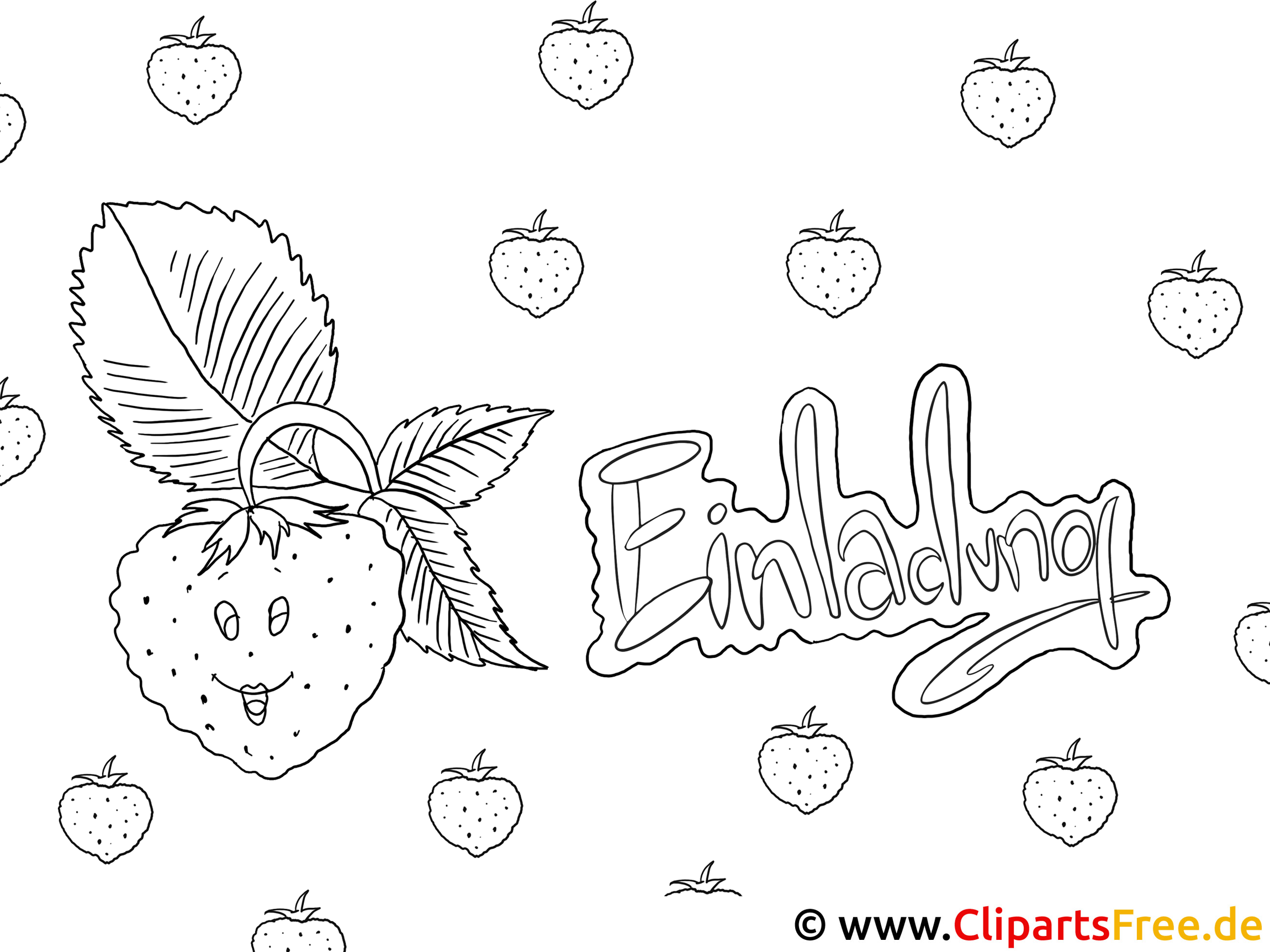 Der Zeichenstil ist einfach, aber lebhaft. Die Linien sind klar und nicht zu dick, sodass die Ausmalung richtig Spaß macht. Man könnte sagen, es ist ein bunter Mix aus Cartoons und einfachen Zeichnungen. Insgesamt schafft dieser Stil ein freundliches Ambiente und strahlt Freiheit beim Ausmalen aus. Die Erdbeere hat diese kleinen, lustigen Details, wie das Gesicht, das einfach zum Verweilen einlädt. Øbringens, auch die Buchstaben der „Einladung“ sind lustig gestaltet, was das Bild zusätzlich aufpeppt!