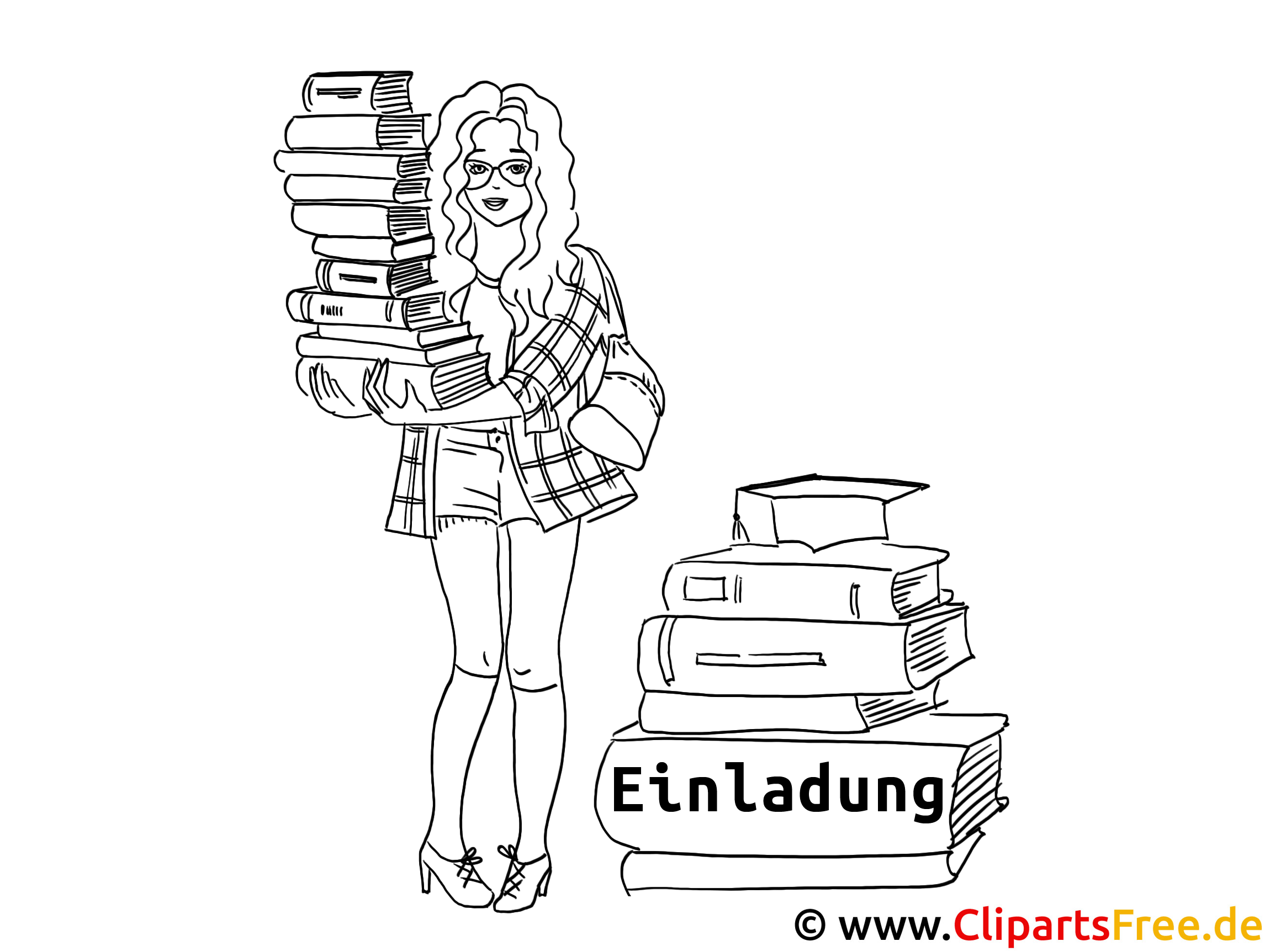 In diesem Ausmalbild sehen wir ein fröhliches Mädchen, das eine riesige Stapel Bücher balanciert. Die frivole Pose und das Lächeln auf ihrem Gesicht lassen uns sofort denken, dass sie etwas Aufregendes plant. Neben ihr stehen weitere Bücherstapel mit dem Wort „Einladung“ darauf. Das Bild schafft eine freundliche, einladende Atmosphäre und regt die Fantasie an. Die Idee, Bücher zu tragen, ist ja eigentlich schon ein kleiner Abenteuer, oder? Und wie viele neue Geschichten stecken wohl in all diesen Büchern?