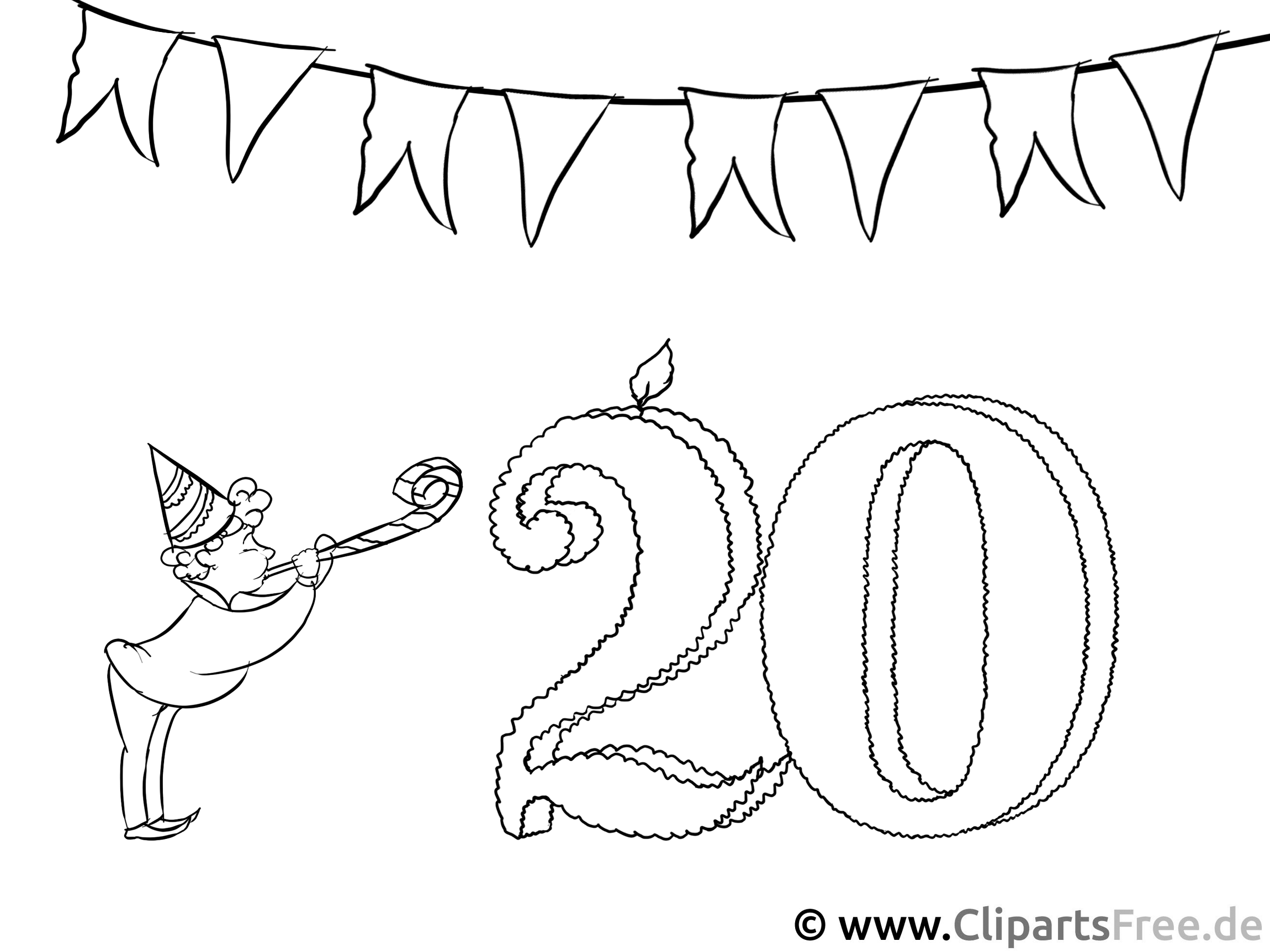 Das Ausmalbild zeigt eine fröhliche Szene – ideal für große Feste! Im Vordergrund steht eine lustige Figur, die eine lustige kleine Tröte bläst, während sie ein riesiges "20" mit verschnörkelten Linien in die Luft hält. Darüber hängen bunte Wimpel, die festliche Stimmung verbreiten. Diese Kombination aus Farben und Formen ist perfekt, um eine jubelnde Atmosphäre darzustellen. Es lädt förmlich dazu ein, es auszumalen und die eigene Kreativität freien Lauf zu lassen. Die Wimpel wippen regelrecht, als ob sie den Jubel mitfeiern. Da lässt das Herz gleich höher schlagen!