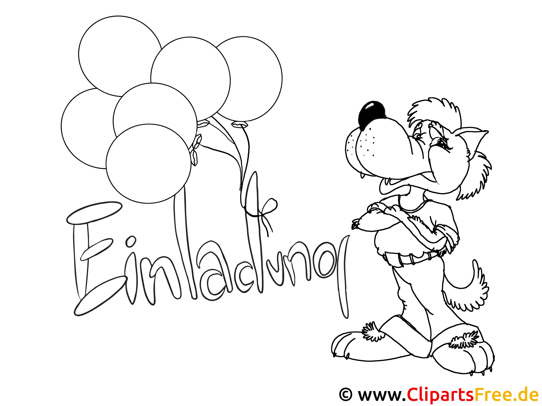 Schau dir mal dieses fröhliche Ausmalbild an! Ein ganz süßer Hund steht da, mit einem breiten Grinsen auf dem Gesicht. Er hat eine lustige Frisur und trägt eine fröhliche kleine Kostümierung. In seinen Pfoten hält er ein paar bunte Luftballons, die schwungvoll in die Luft steigen. Die Luftballons sind rund und laden förmlich dazu ein, sie in den tollsten Farben auszumalen. Über dem Hund prangt der Schriftzug „Einladung“, der sicher auf eine Geburtstagsfeier oder ein tolles Fest hinweist!