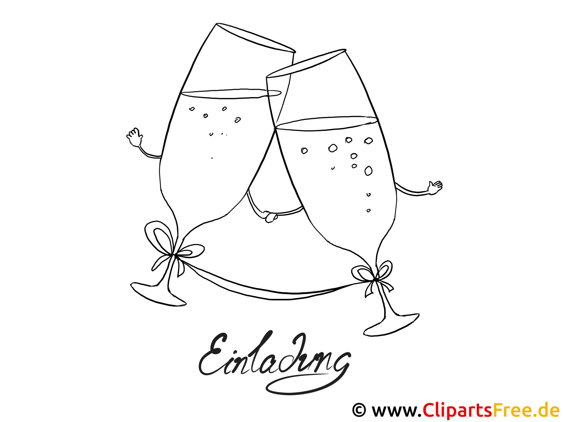 Hier haben wir ein wirklich fröhliches Motiv! Es zeigt zwei Gläser, die ja fast wie liebende Menschen aussehen. Mit freundlichen kleinen Ärmchen winken sie uns zu. Die Gläser stehen auf einem zarten Band, das sie zusammenhält. Und darunter gibt's ein schönes Wort: „Einladung“. Das ganze Bild strahlt einfach Spaß und Geselligkeit aus, perfekt für feierliche Anlässe! Die schaumigen Blasen im Glas sorgen für eine festliche Atmosphäre.