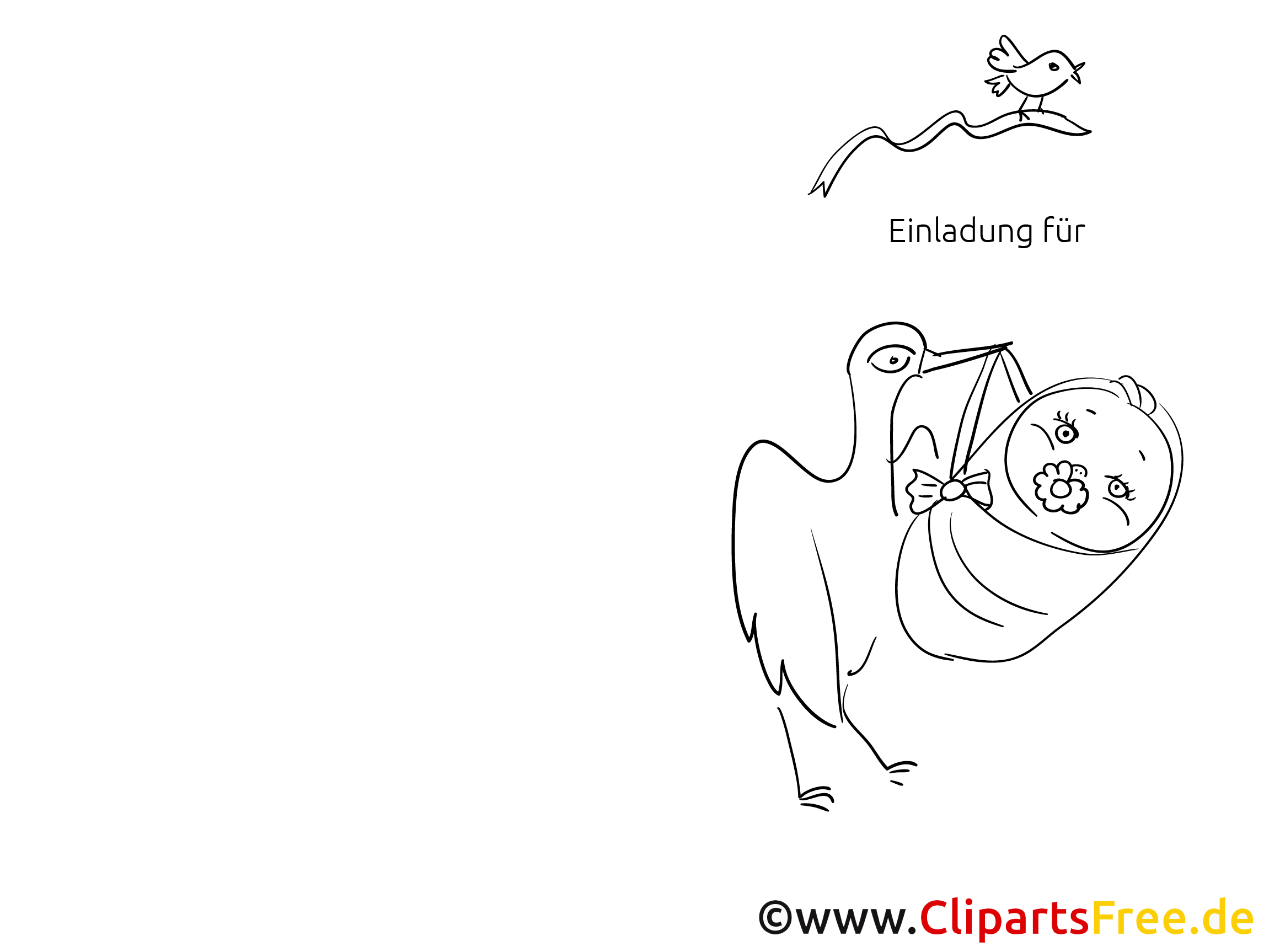 Storch mit Baby Klappkarte-Einladung gratis basteln